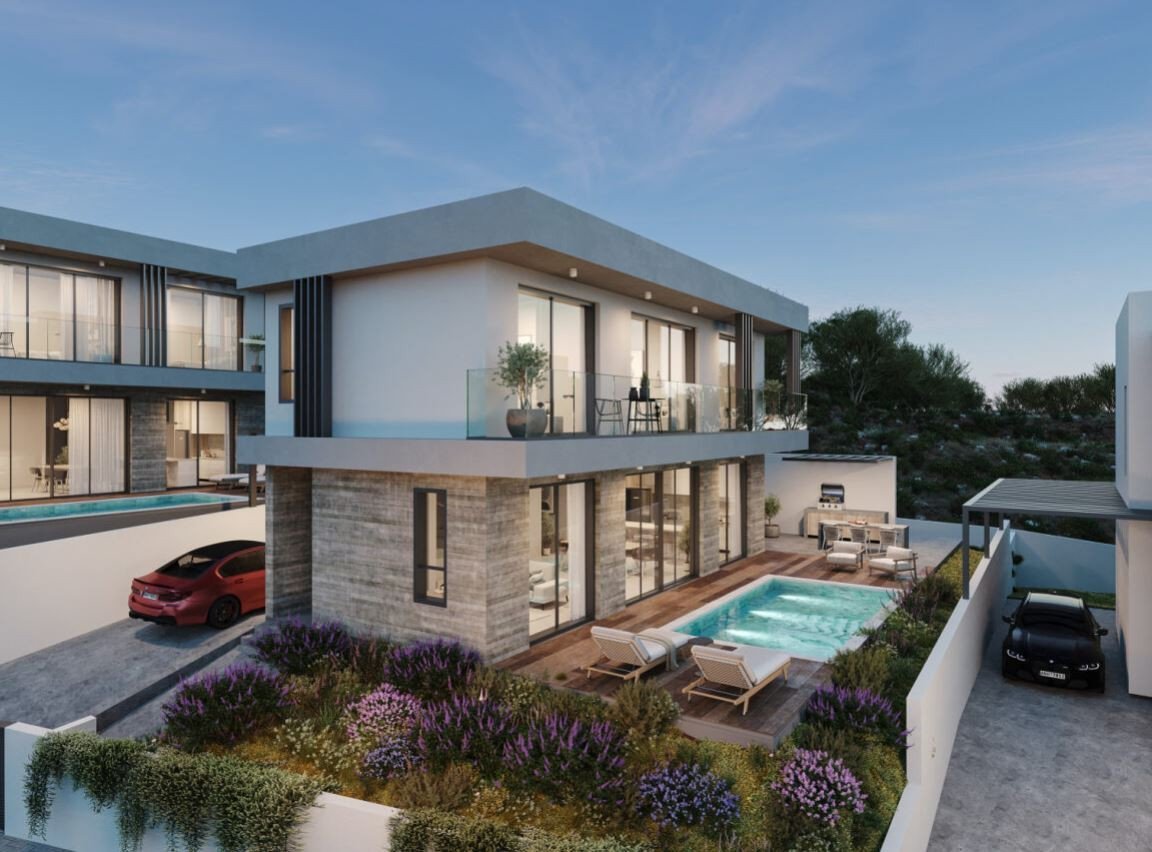 Stunning collection of 9 luxurious villas nestled among the picturesque rolling hills of Episkopi in Paphos, Cyprus. This beautiful mountainous and sea view region is known for its lush almond and olive trees, and the tranquil surroundings offer a peaceful and serene environment for residents