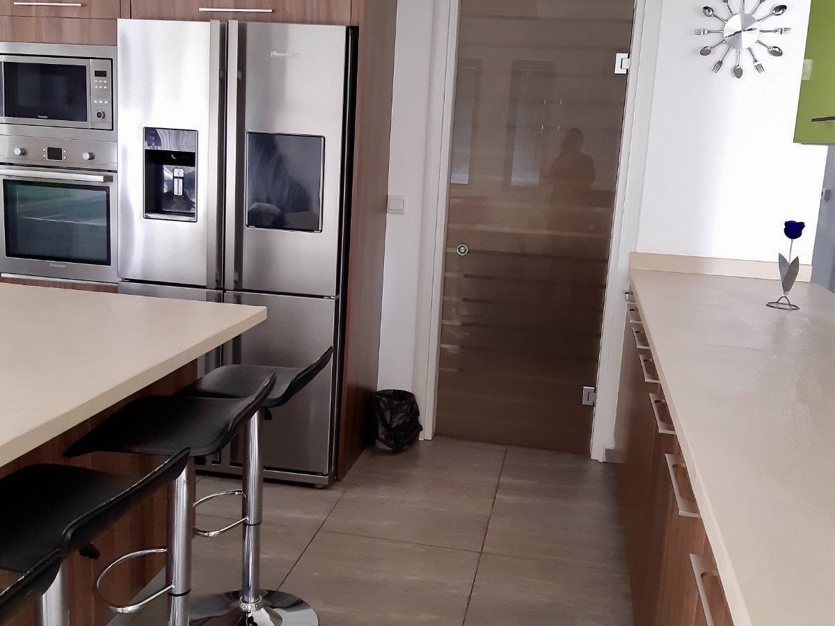 The house is offered fully-furnished and provides electrical appliances which include an oven, cooking stove, a washing machine, a dryer, and a fridge. The house's luxuries include A/C units in all areas, underfloor heating, solar and pressurized water, a security system, a large yard, and covered parking spaces.