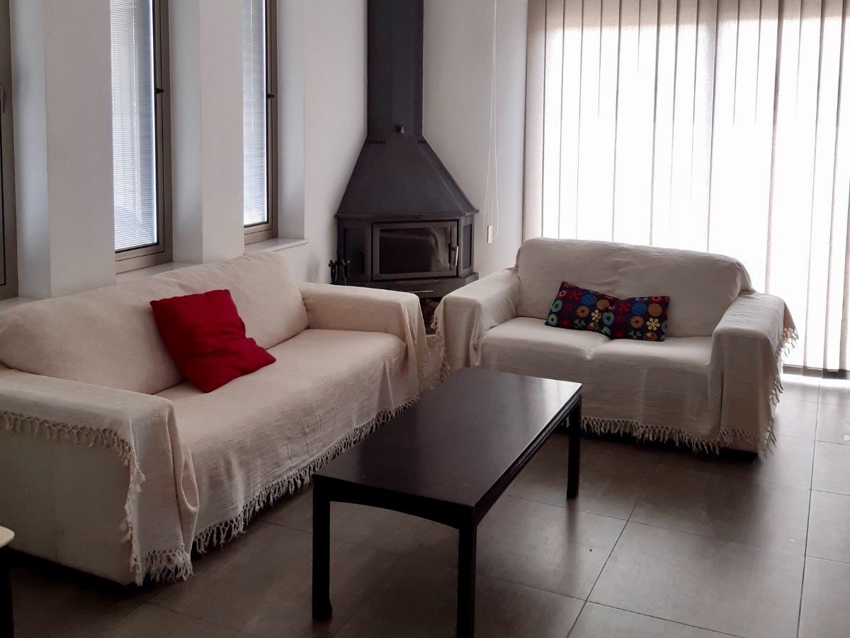 The house consists of two bathrooms, one being ensuite and the other displaying hydromassage features, a guest toilet, a kitchen, a dining area with a fireplace, and a 19 sq.m. veranda.