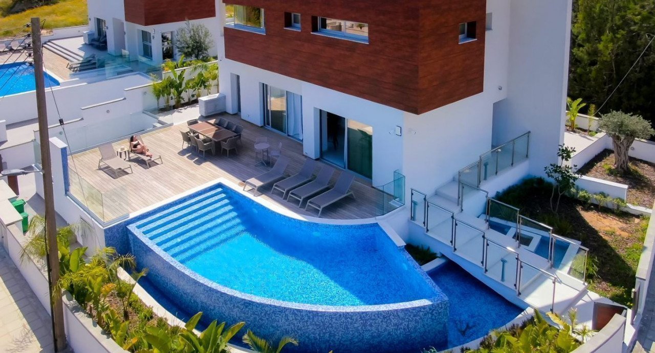 This magnificent villa situated on the prestigious Kalogiroi Hills in Limassol, a prime location offers tranquillity and easy access to the highway and the city.