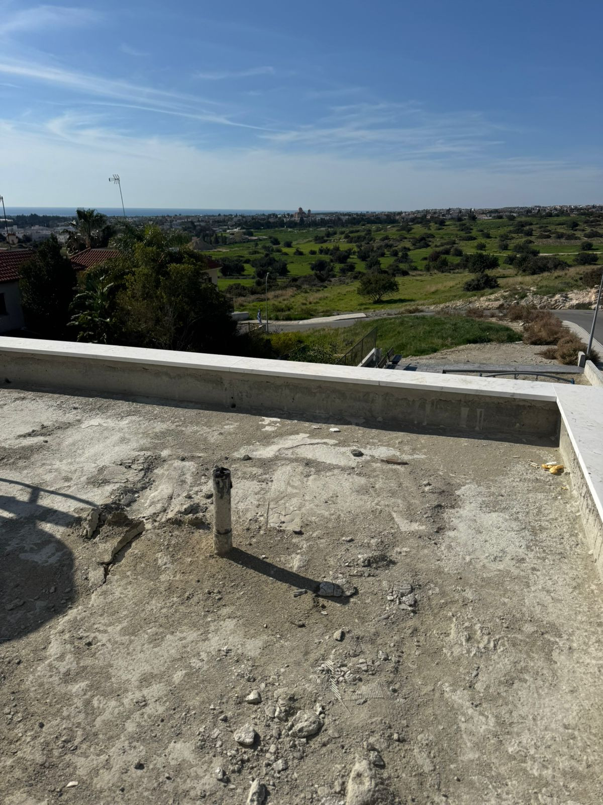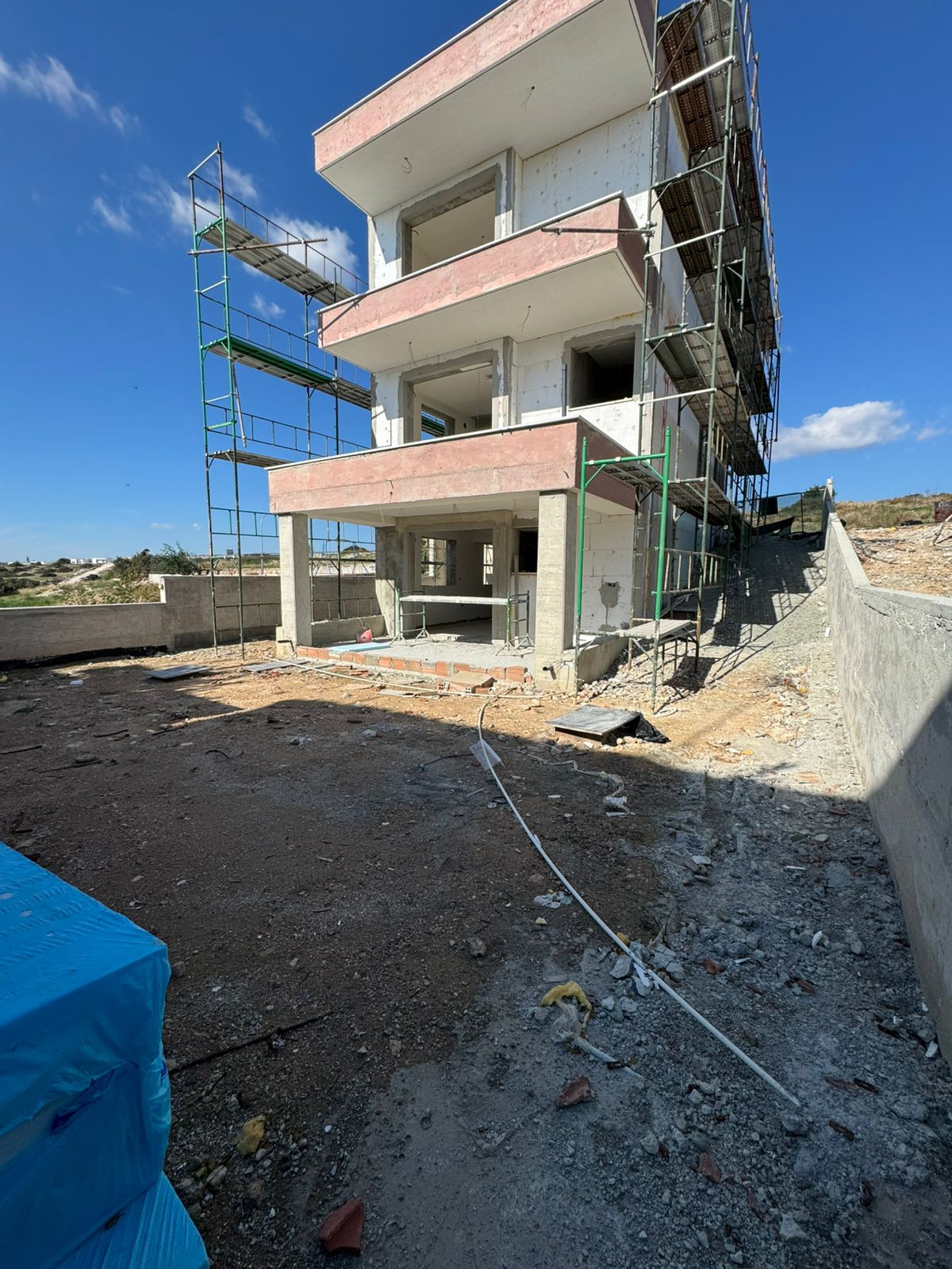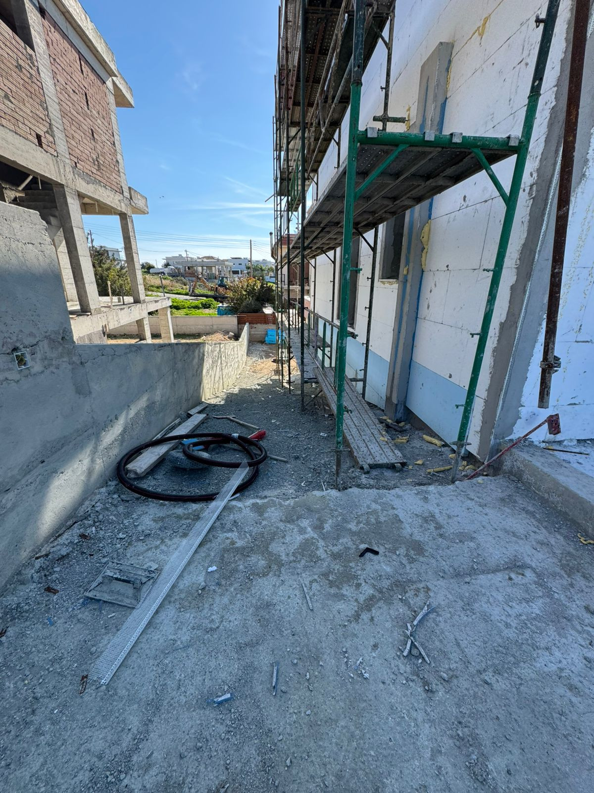 Detached 3-bedroom house in Kolossi area, Limassol. The house located next to green area. It has a big basement and unobstructed views. Status: Completed