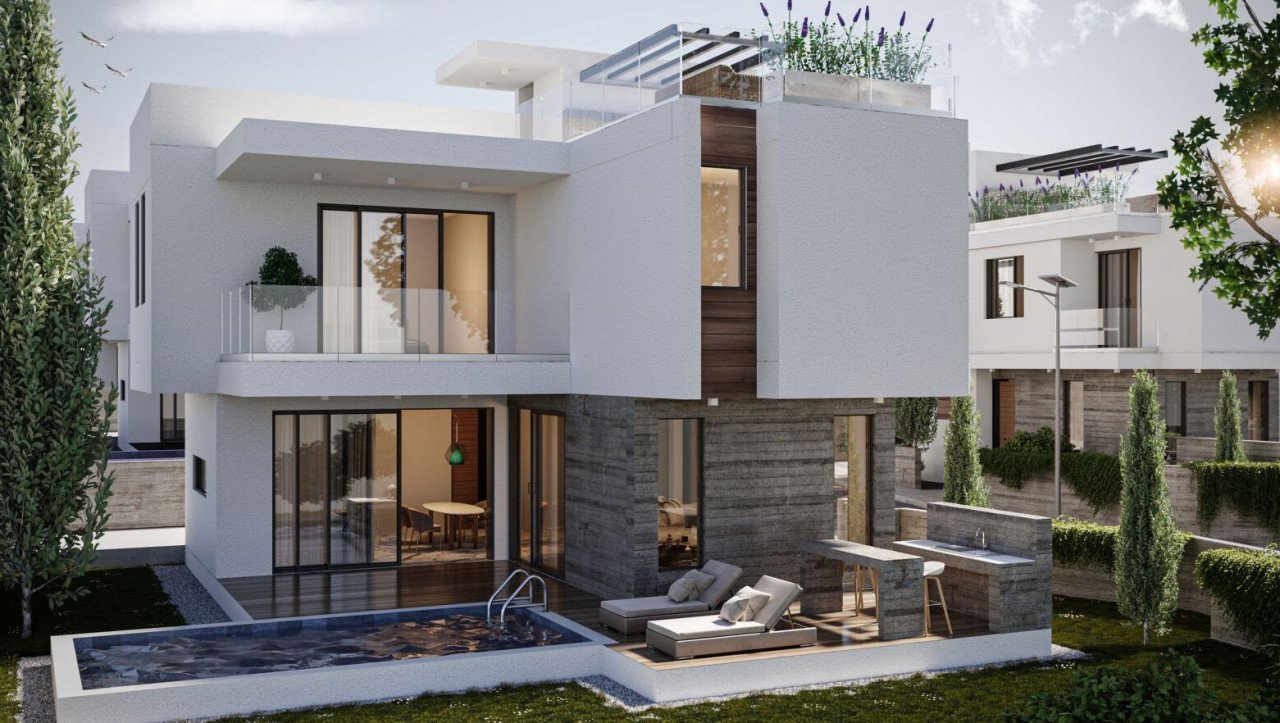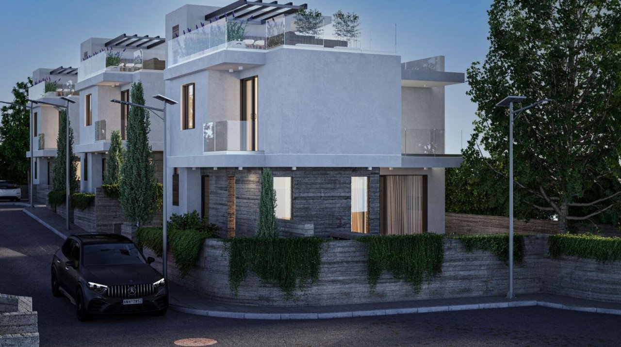 Stunning three bedroom villa set in a serene residential area of Konia a traditional village with an immense view, from where one can enjoy gazing all the way to the city of Pafos with ease. Nestled in a secluded location, these six modern homes offer the perfect blend of privacy and contemporary living. Enjoying a prime position adjacent to a large project green zone, providing residents with convenient access to a host of recreational amenities, including a tennis court, basketball court, and playground.  The architectural design showcases a captivating fusion of materials, exuding a timeless and sophisticated aesthetic. Upgrade your lifestyle with high-quality VRV systems and underfloor heating, ensuring optimal comfort year-round. Each villa boasts thoughtfully designed interiors, featuring spacious living areas flooded with natural light and tranquil bedrooms for ultimate relaxation. Step outside to private gardens and inviting patio areas, allowing you to revel in the Mediterranean climate and create lasting memories. Key Features Exclusive and secluded location High level of privacy and security High-quality and upgraded technology features Efficient cooling and heating with VRV systems Underfloor heating for added luxury and comfort BOSCH kitchen appliances Private pools Hans Grohe sanitaryware Cutting-edge security systems for enhanced safety Expansive living areas and peaceful retreat bedrooms Access to green zones with public park, playground, tennis court and basketball court Energy class: pending AVAILABILITY Villa  Covered internal area 163,8 sq.m. Covered veranda 37 sq.m. Roof garden 38 sq.m. There are more houses availble in this project.