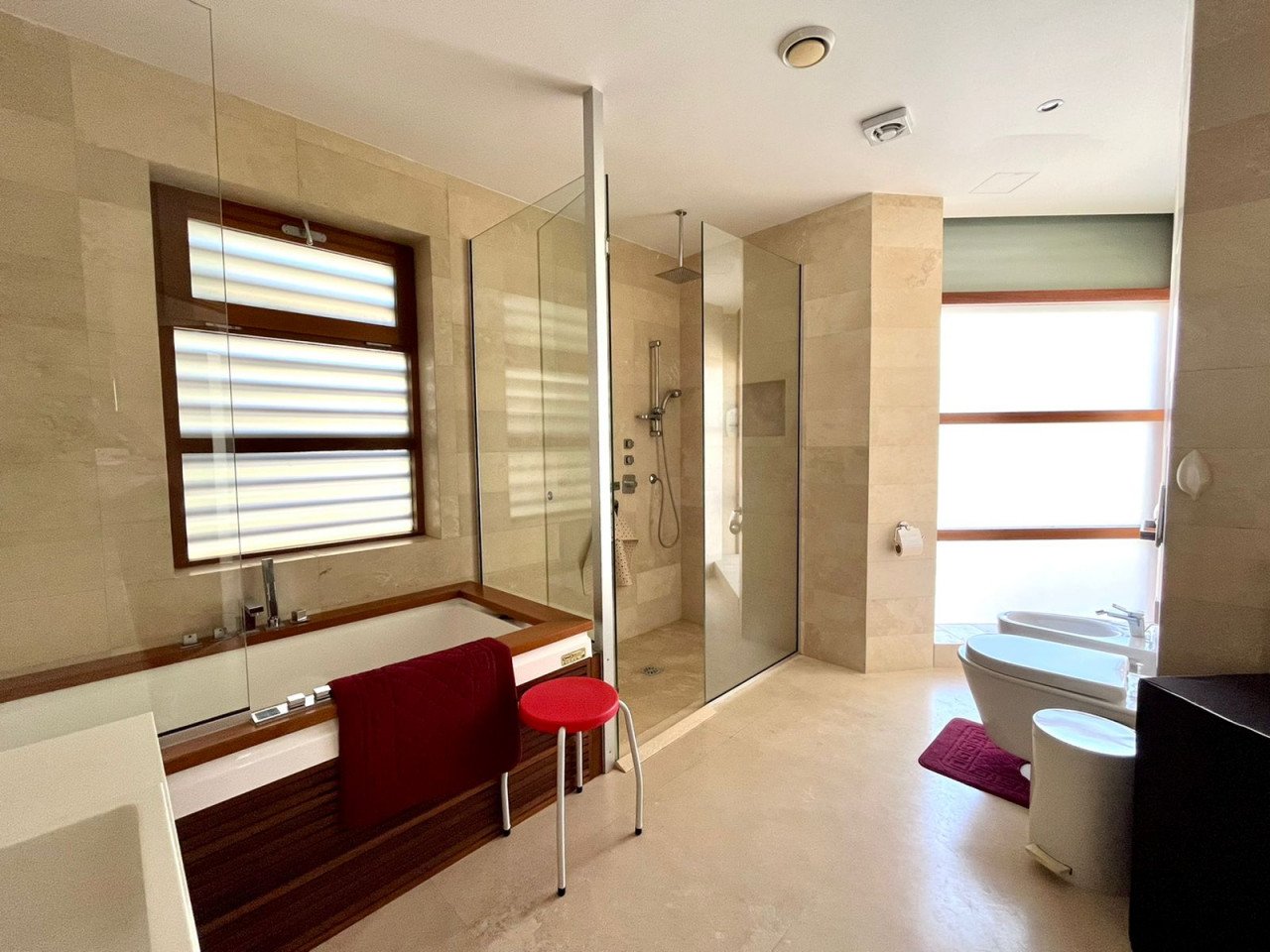 Sea View Master bedroom with walk in wardrobe, large bathroom with jacuzzi and shower