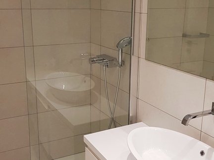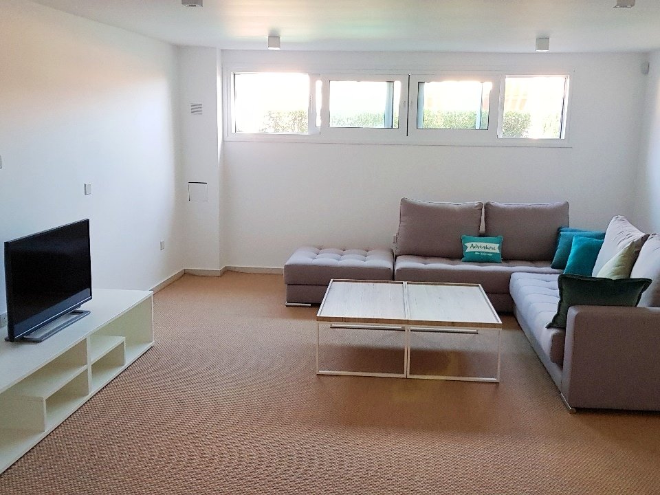 Semi-basement floor: a big room, that can be used as cinema-room, gym, bedroom, etc. a kitchen with laundry and a small room with bathroom.