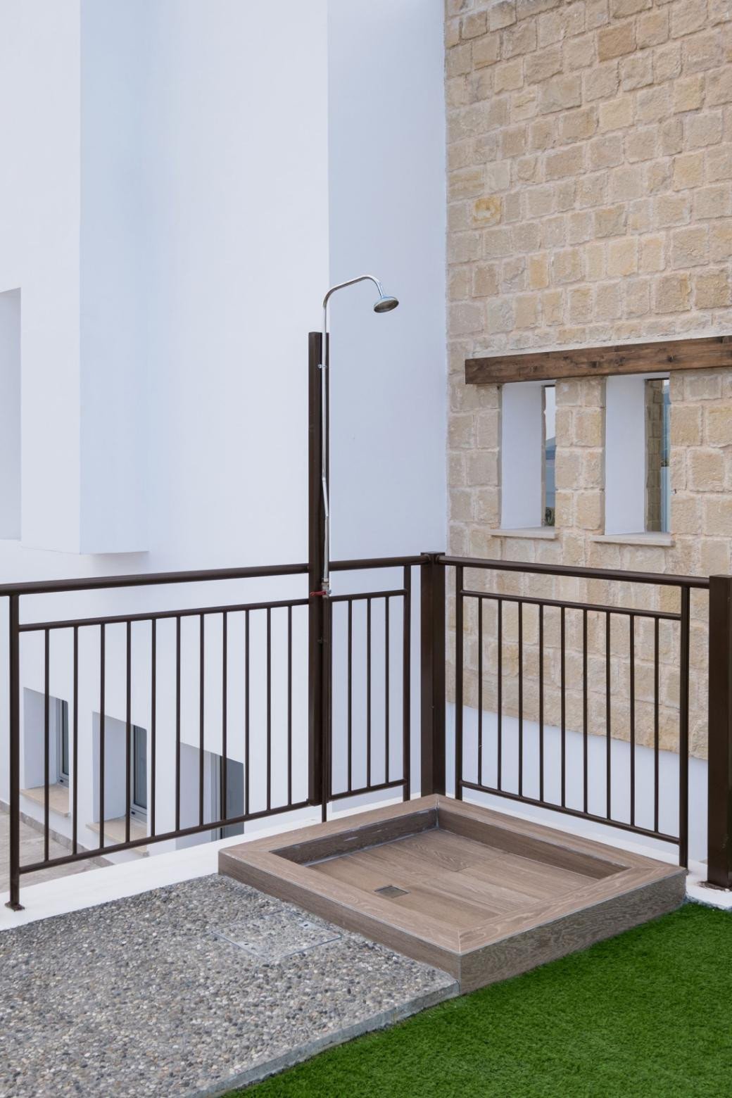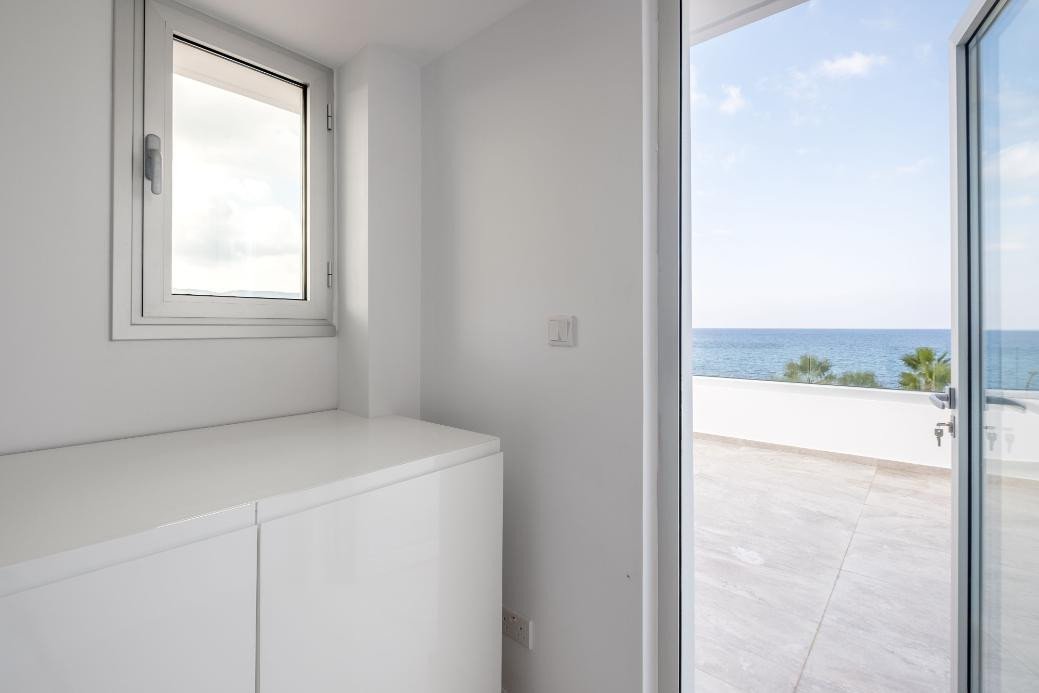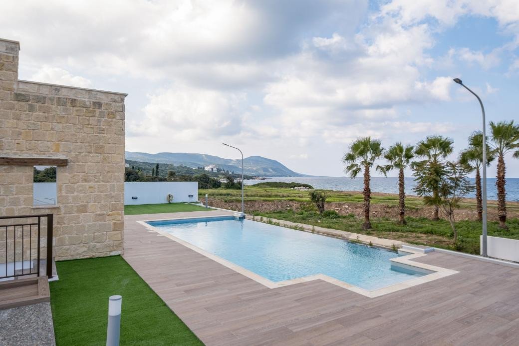 This is a seaside luxury villa in Latchi. It is part of a seafront project. It has a covered area of 207sqm and is built on a plot of 895sqm. It consists of 3 bedrooms, 5 bathrooms, swimming pool and garden.