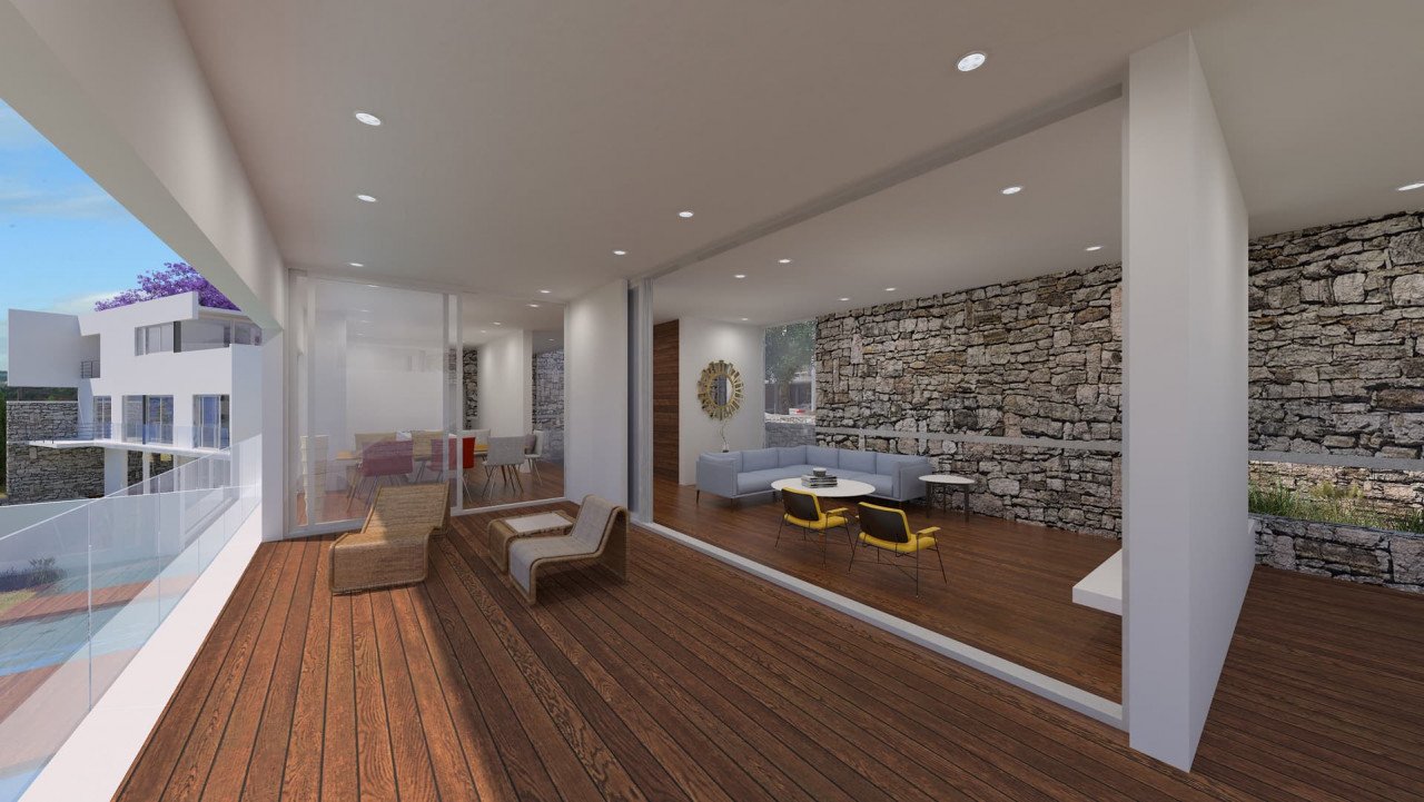 Despite the modern architectural design, there is direct reference to the regional and Mediterranean tradition, not only through the use of traditional materials (stone, wood etc.), but also through the organisation of the interior spaces, making use of the semi open air spaces and outdoor spaces as vital parts of the residence.