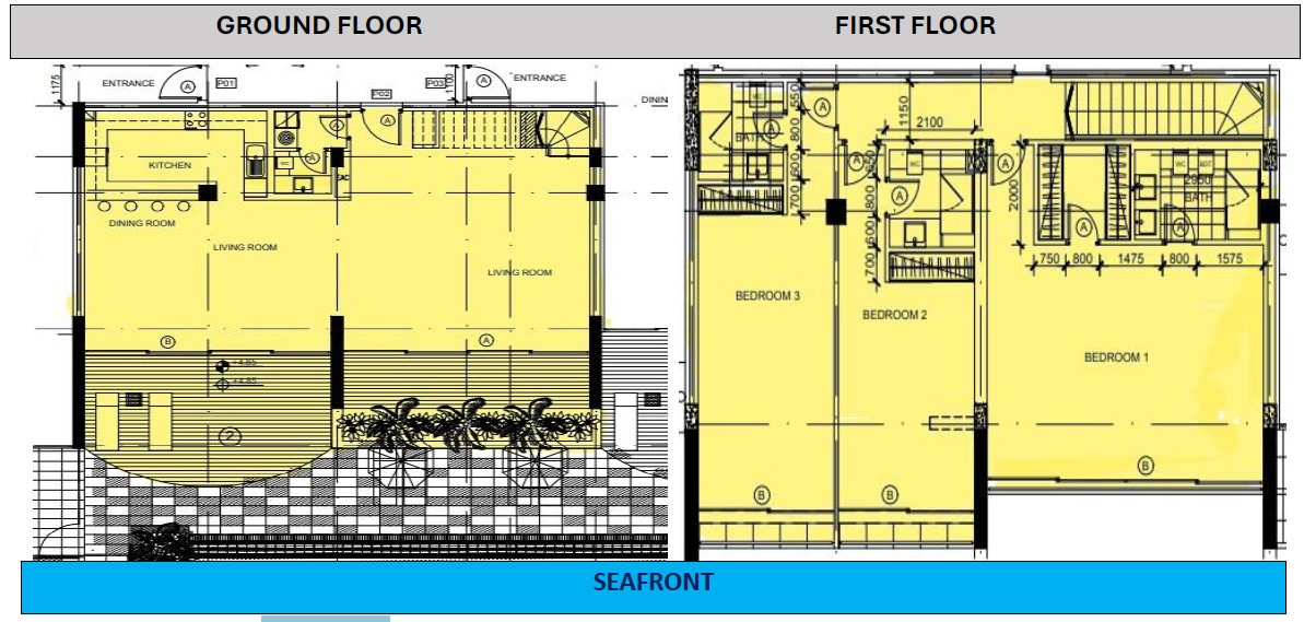 The ground floor features a stylish, open-plan kitchen, living, and dining area designed to maximize natural light and capture the stunning sea and pool views. It's the perfect space for hosting guests or enjoying serene evenings by the coast.