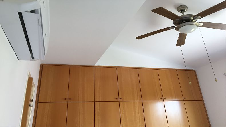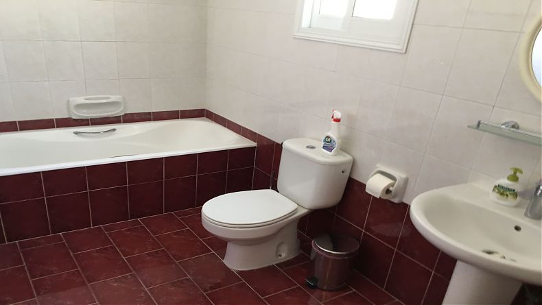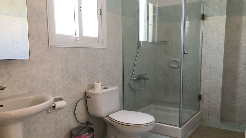 On the first floor are 3 double bedrooms with fitted wardrobes and ceiling fans, a good sized uncovered balcony with sea view, family bathroom and en-suite shower in the master bedroom.