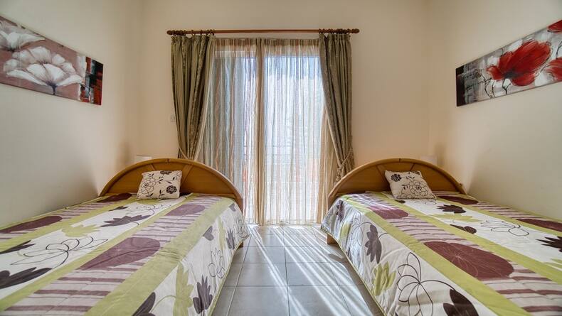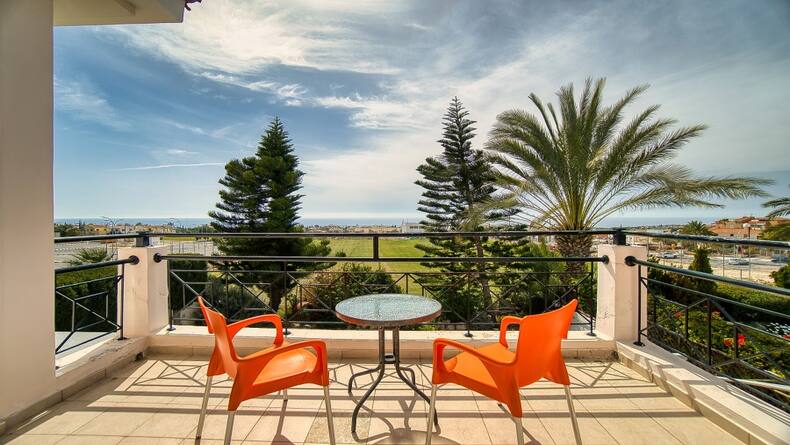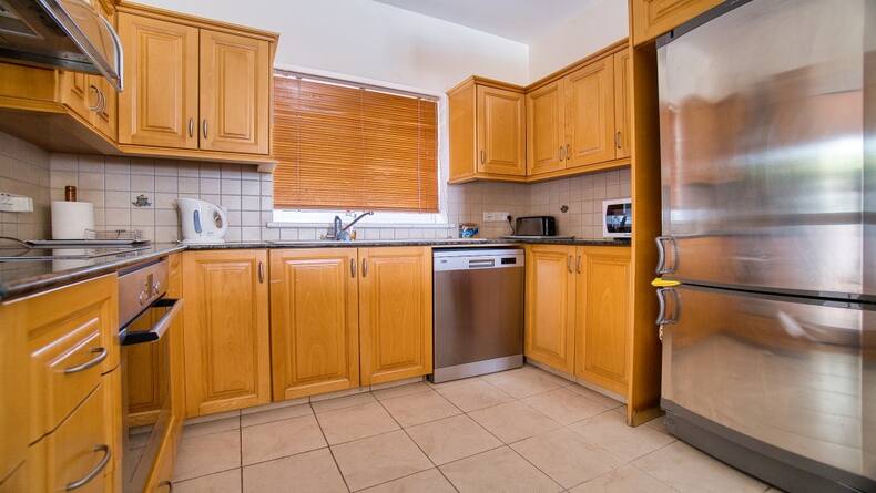 This stunning villa offers a perfect blend of luxury living and breathtaking views. Situated atop a hill, overlooking both the training football field and the azure sea, it provides a serene and picturesque setting for its residents. Located within walking distance to the main road, residents can easily access a plethora of amenities, including a pharmacy, bakery, grocery stores, cafes, bars, and taverns. The villa boasts a spacious living room and dining area, elegantly furnished to offer comfort and style. Large windows provide ample natural light and frame the stunning views outside, creating a welcoming ambiance for relaxation and entertainment. The kitchen is designed with functionality and style in mind. It features a range of wall and base units with complementary worktops, providing ample storage and workspace. Equipped with modern appliances including an integrated dishwasher, electric hob, and single oven, it offers convenience for cooking and meal preparation. Enjoy panoramic views of the sea and the surrounding landscape from the villa's elevated position on the hill. Whether relaxing indoors or spending time on the outdoor terrace, residents can immerse themselves in the beauty of the natural surroundings. The villa offers three bedrooms, each meticulously designed and furnished to provide comfort and tranquility for residents. Situated within walking distance to the main road, residents have easy access to a variety of amenities, making daily errands and leisure activities hassle-free.
