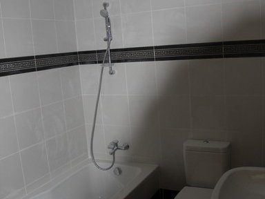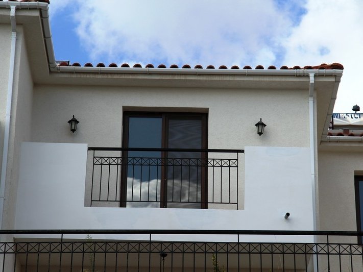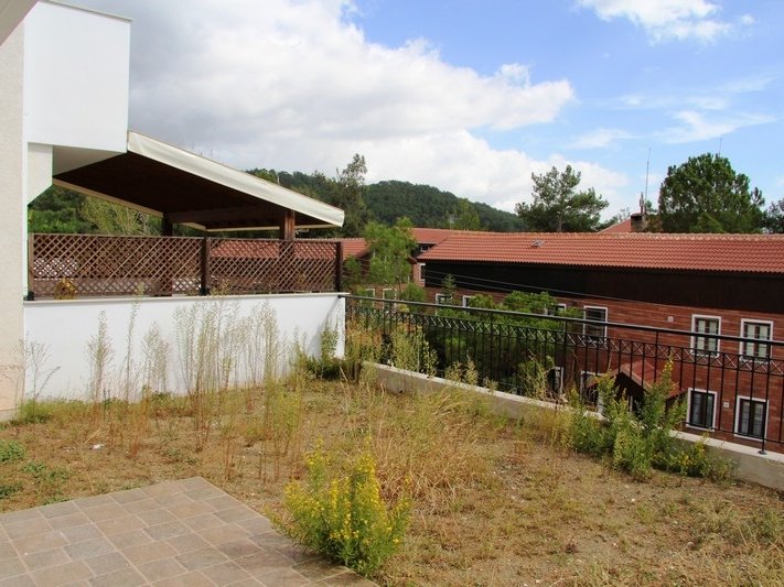 There are 2 bathrooms and 3 toilet rooms in the townhouse, it has large terraces overlooking the mountains and the sea.