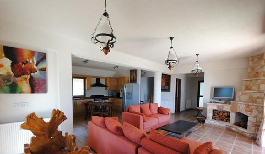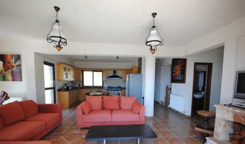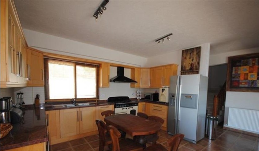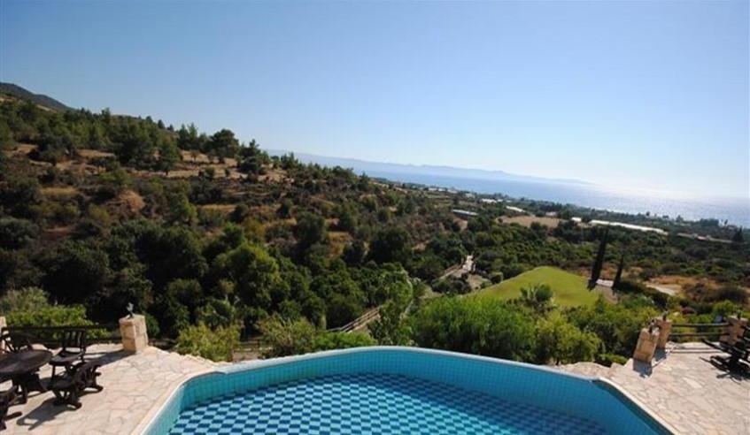 A unique county residence located high above Ayia Marina, a small but friendly village on the outskirts of Polis with picture perfect views over Paphos pine forest to the Chrysochous Bay. This stone built house has 3 bedrooms all ensuite and is on a plot of 7,900 sqm. There is an Infinity swimming pool with the most amazing views, stone buildings suitable for riding stables, etc and provision for two tennis courts. As you drive through the electric gateway to the massive driveway take a moment to fully appreciate the stunning location of this property, being next to the Paphos Pine Forest but having unique Panoramic views of the mountains and the sea beyond. The front door leads into the entrance hallway, and to the left are the guest toilets and downstairs bedroom. This is a spacious double bedroom with of patio doors leading out onto the pool area, built in wardrobes, a/c and ceiling fans and an ensuite bathroom. To the right of the front door is the is the open plan lounge / dining / kitchen area. Upstairs on the landing there is a kitchenette with sink, fridge and wine cooler and access to the remaining bedrooms and access to the veranda. The master bedroom has an ensuite bathroom with a corner Jacuzzi Bath. Patio doors lead out onto a large terrace of 48sqm where you can relax and watch the whole of the local countryside and the sea in the Chrysochou Bay. To complete the upstairs area is another double bedroom together with an ensuite bathroom. This bedroom has two balconies, one with views down to the sea and other towards the mountains. The plot is set over 2 areas - the upper area where the house is has an 12 x 5 m infinity pool and maintenance gardens, car port, large covered outside kitchen, bar and BBQ area, as well as a Utility room for storage and washing machines. Below the house is a large grassed area which can easily accommodate two tennis courts, and below this at the bottom of the property, is an area presently designed as stables for horses. These stables are stone built and on a large separate plot. these stables could easily be converted into art studios etc or used as a separate office area. There is a separate entrance to this area, through double iron gates.
