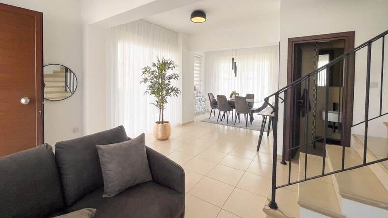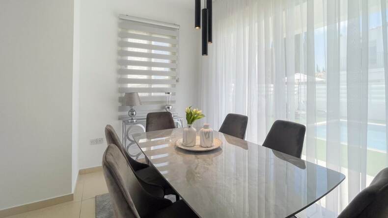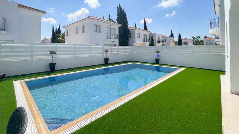 This stunning 3-bedroom villa is situated in an ideal location within the Pernera Tourist area, offering easy access to a plethora of restaurants, bars, and shops located on the bustling Protaras street. The villa is part of a picturesque complex that boasts awe-inspiring views and a tranquil atmosphere. The property features generously proportioned bedrooms, including a luxurious main bedroom with an exclusive en-suite bathroom. The outdoor area boasts a well-sized swimming pool, complemented by lush, mature gardens that create a refreshing ambiance around the villa. The nearest beach is conveniently located within walking distance, making this villa an ideal home away from home for those seeking a serene and accessible vacation experience. Location: Nearest Beach: 800m Paralimni New Marina:2km Amenities: 700m