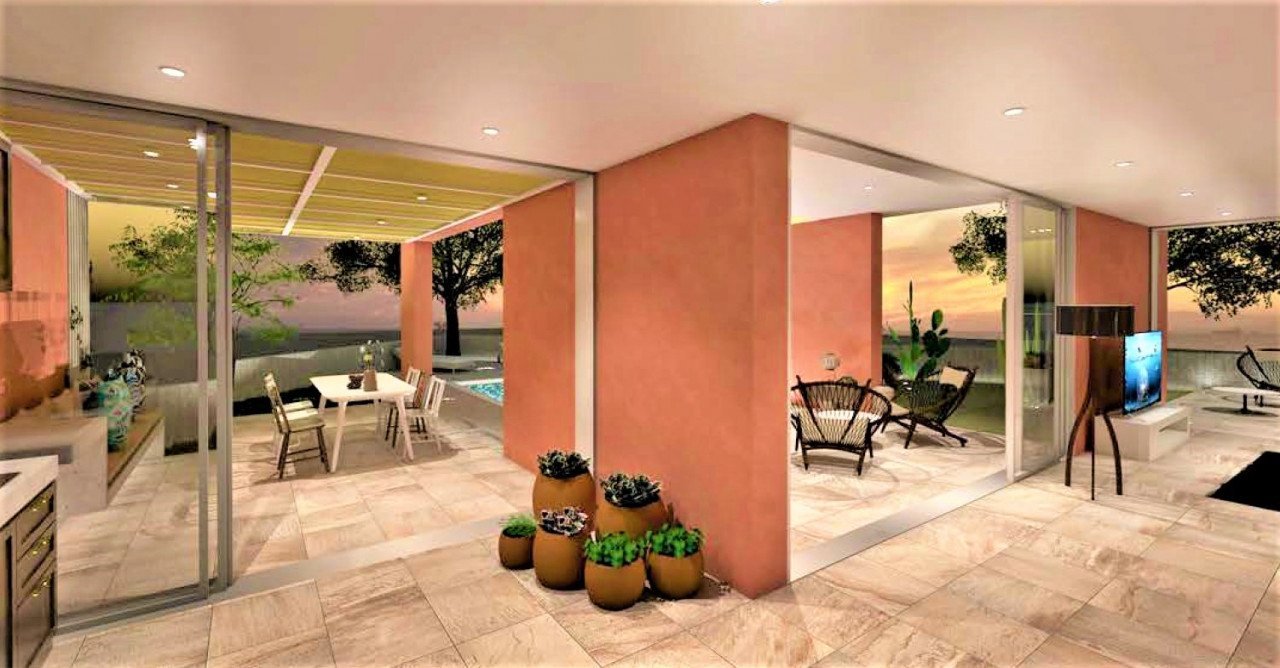 The project you're describing is a luxurious and exclusive development of three off-plan villas, located just 400 meters away from the beach and within walking distance of the main street in the popular tourist area of Protaras. These villas have been thoughtfully designed to seamlessly connect the interior with the exterior, creating a harmonious and open living space that maximizes natural light and ventilation.
