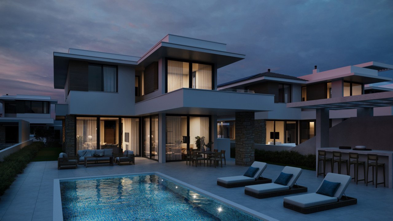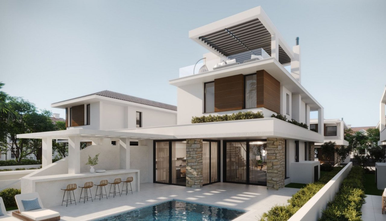 Modern gated complex in Larnaca tourist area in Pyla. The project consists of 16 vilas with swimming pools.