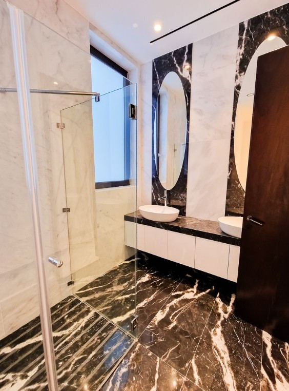 Large floor-to-ceiling windows flood the open-plan living areas with natural light, seamlessly connecting the indoors to the surrounding landscape. High-end kitchens, elegant dining spaces, and en-suite bedrooms—some with walk-in closets and dressing rooms—create a perfect blend of luxury and functionality.