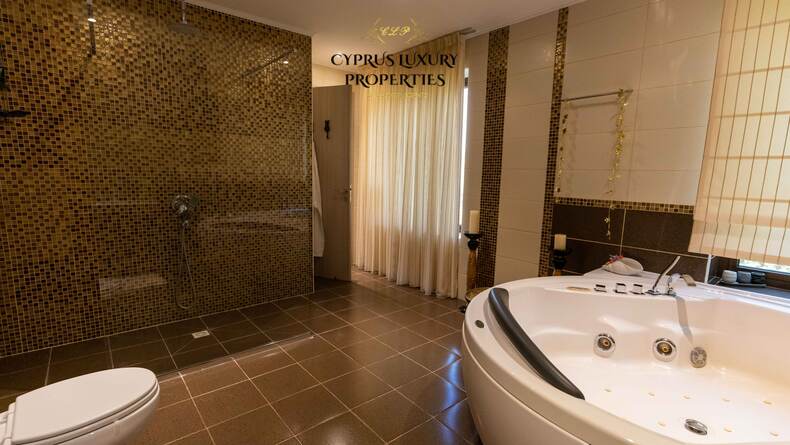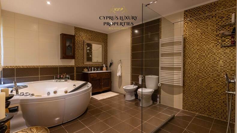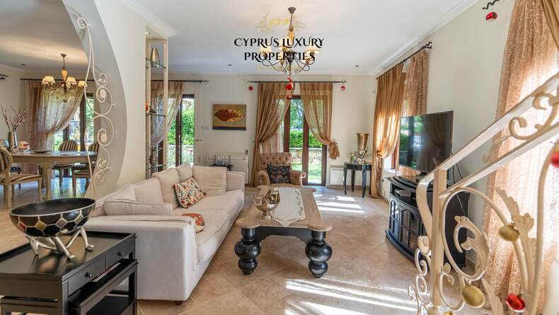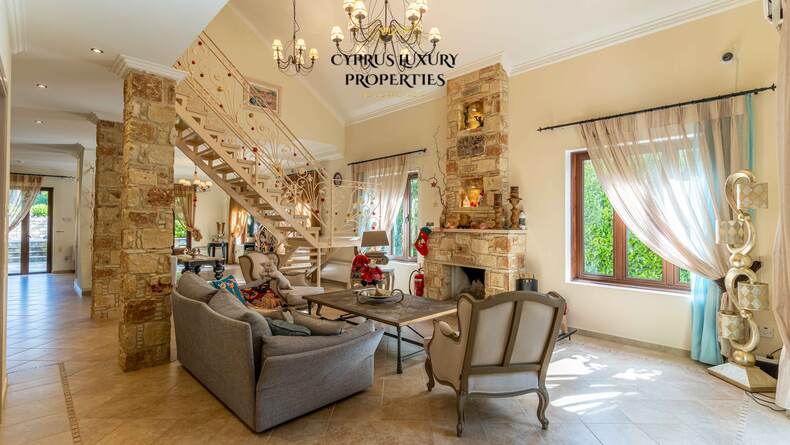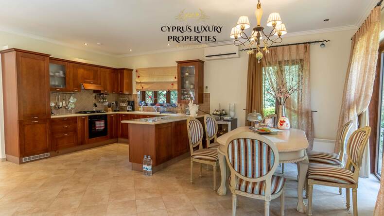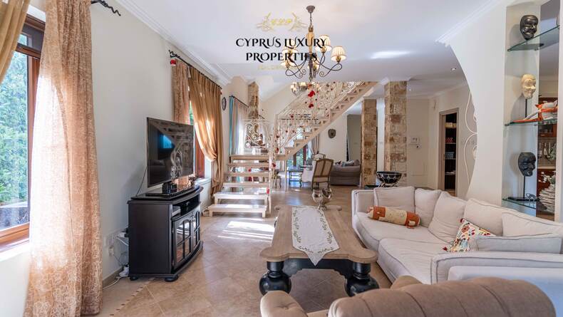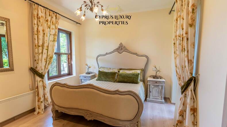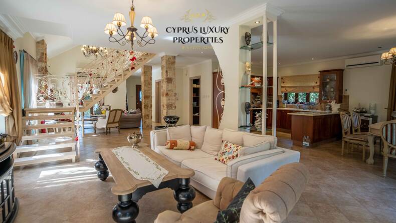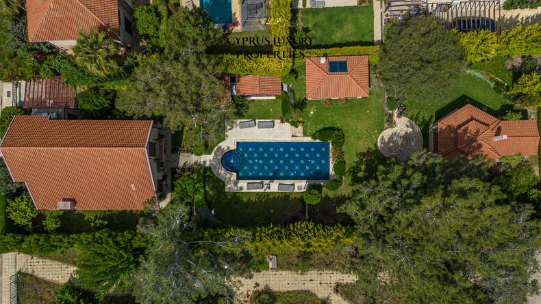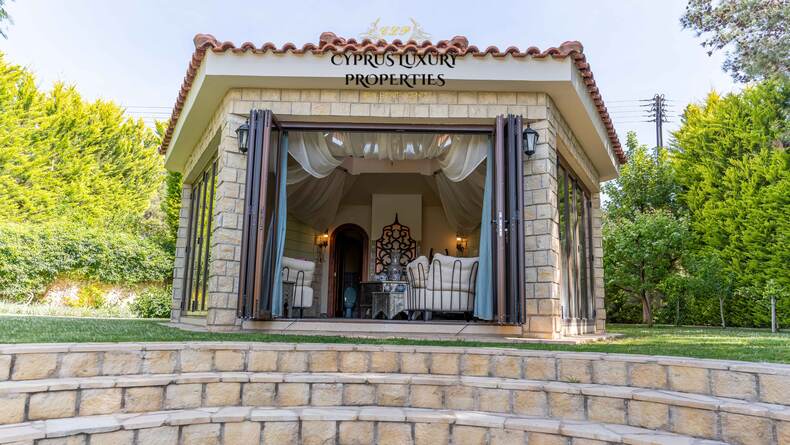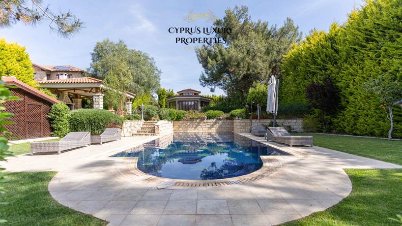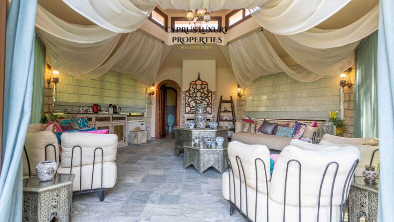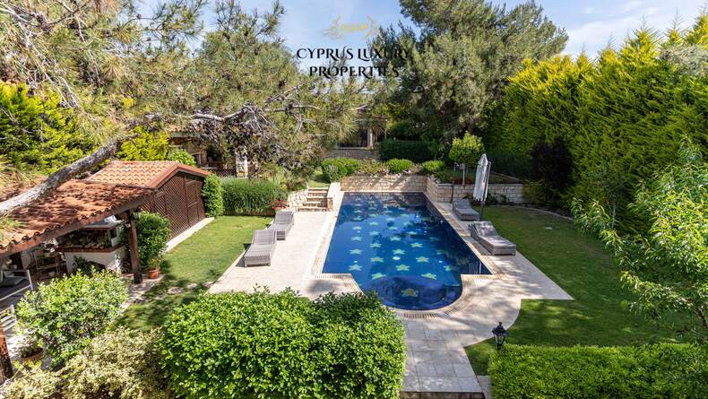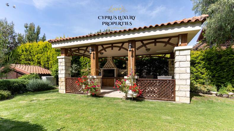 Situated in a beautiful green area in the Souni (Limassol district), surrounded by pine trees, just 15 minutes from the city, this villa impresses with its excellent interior design (designed by Anastasia Blinova) and landscape! Luxury country style, hammam, pergola, BBQ, swimming pool, mature garden with fruit and pine trees.