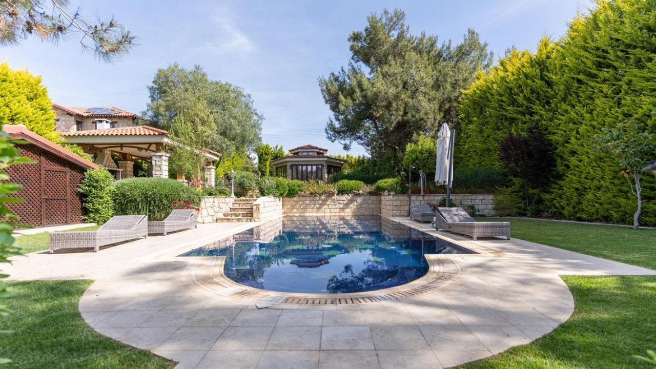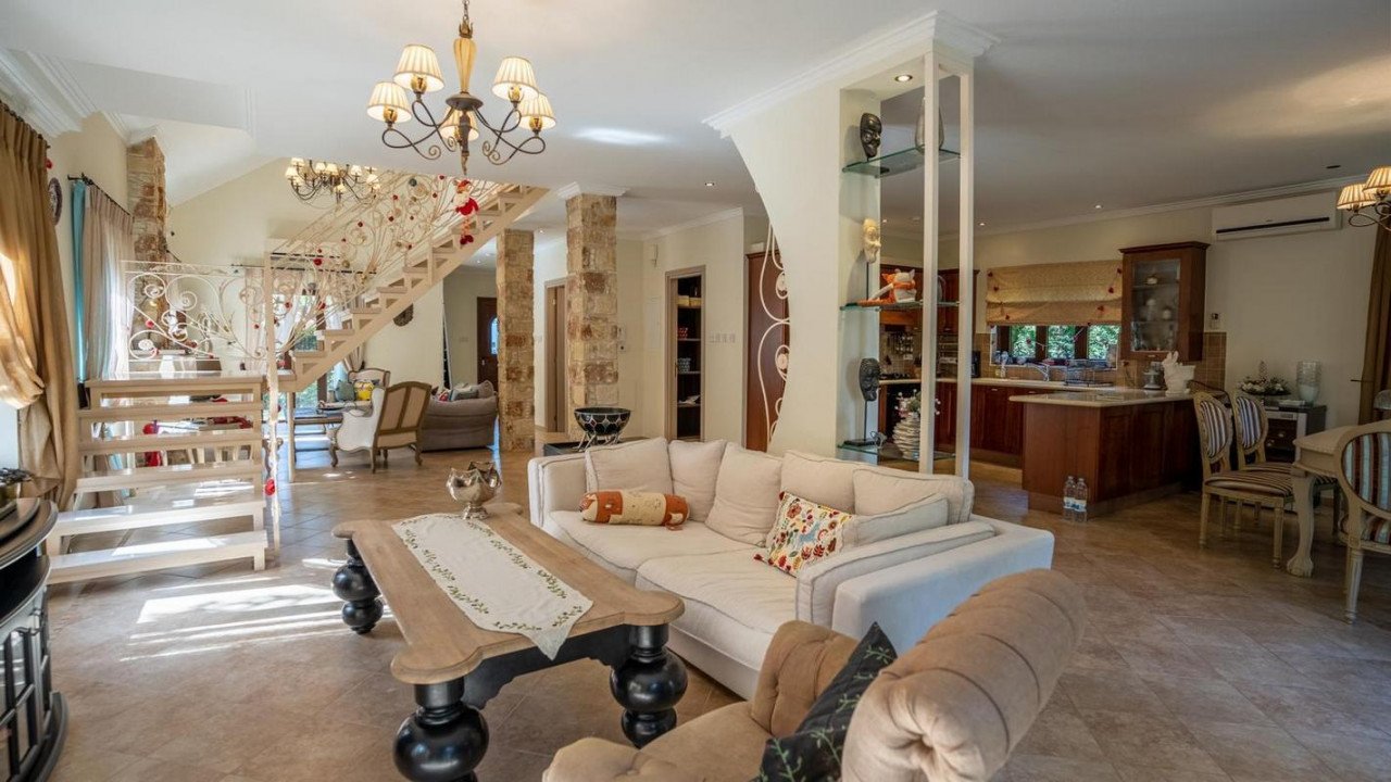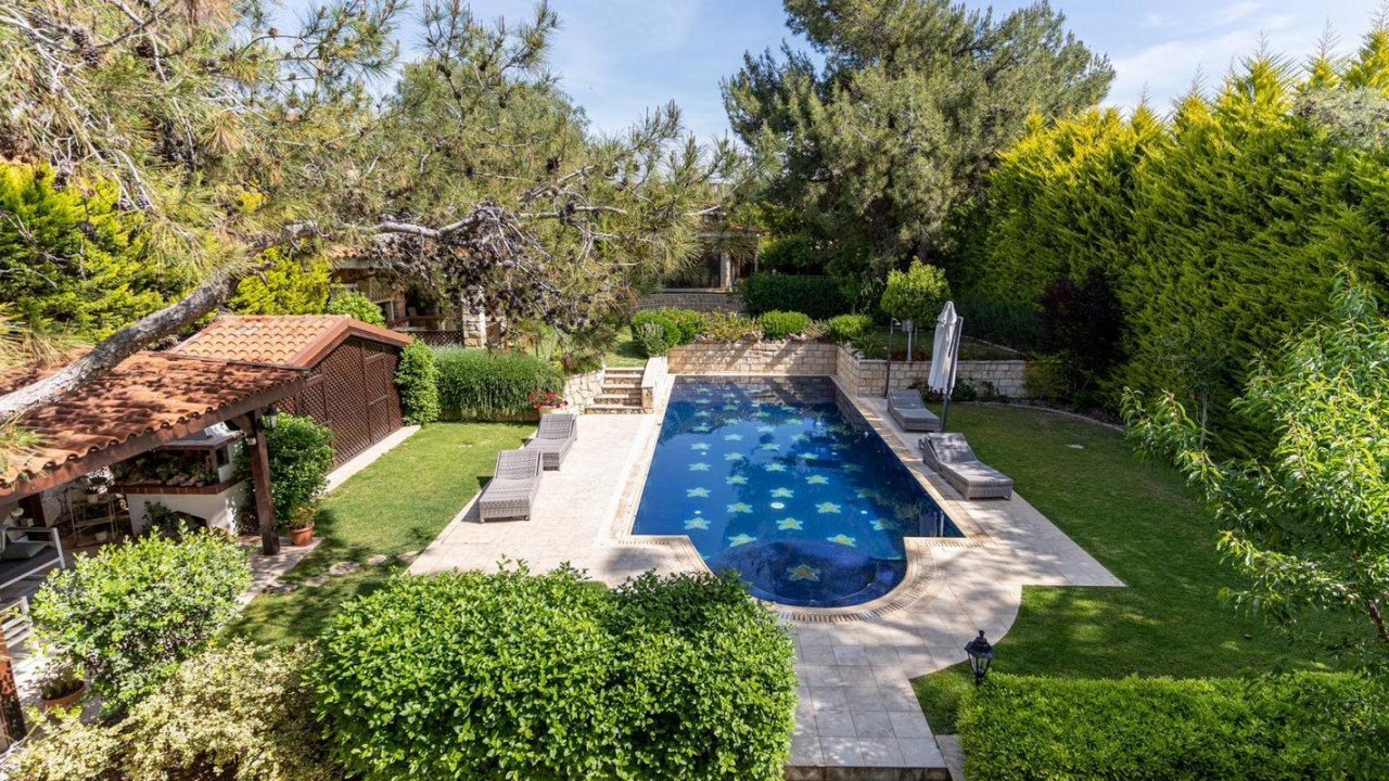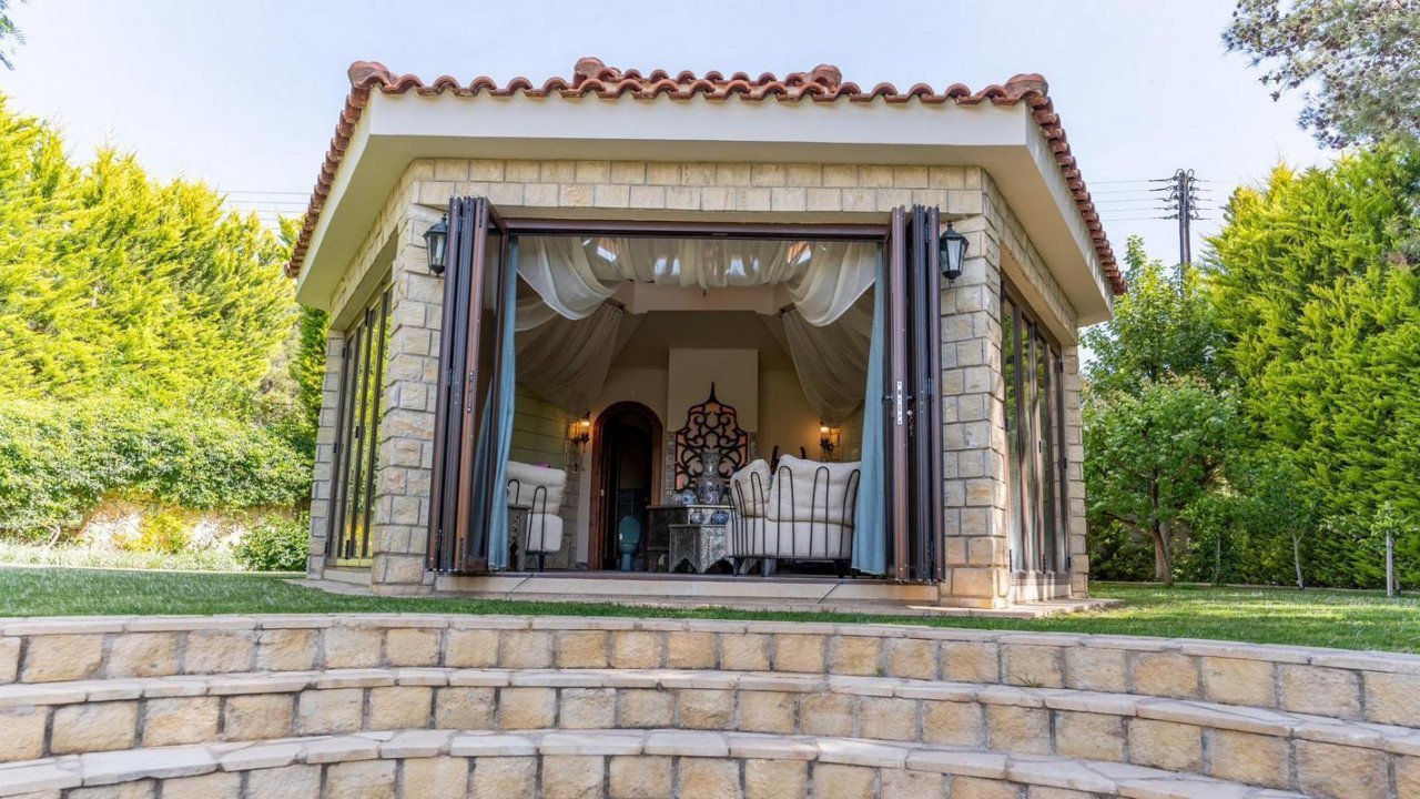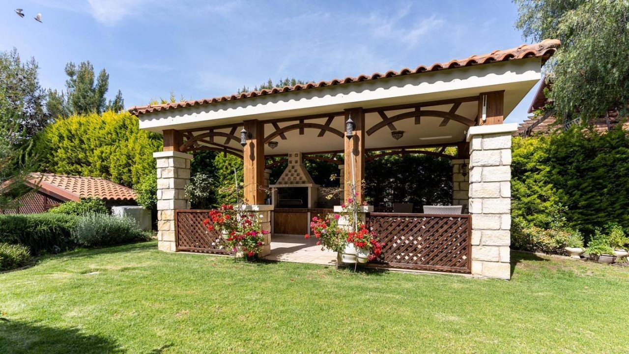 3 Bedrooms Detached House in Souni, Limassol. Situated in a beautiful green area in the Souni (Limassol district), surrounded by pine trees, just 15 minutes from the city, this villa impresses with its excellent interior design (designed by Anastasia Blinova) and landscape! Luxury country style, hammam, pergola, BBQ, swimming pool, mature garden with fruit and pine trees.