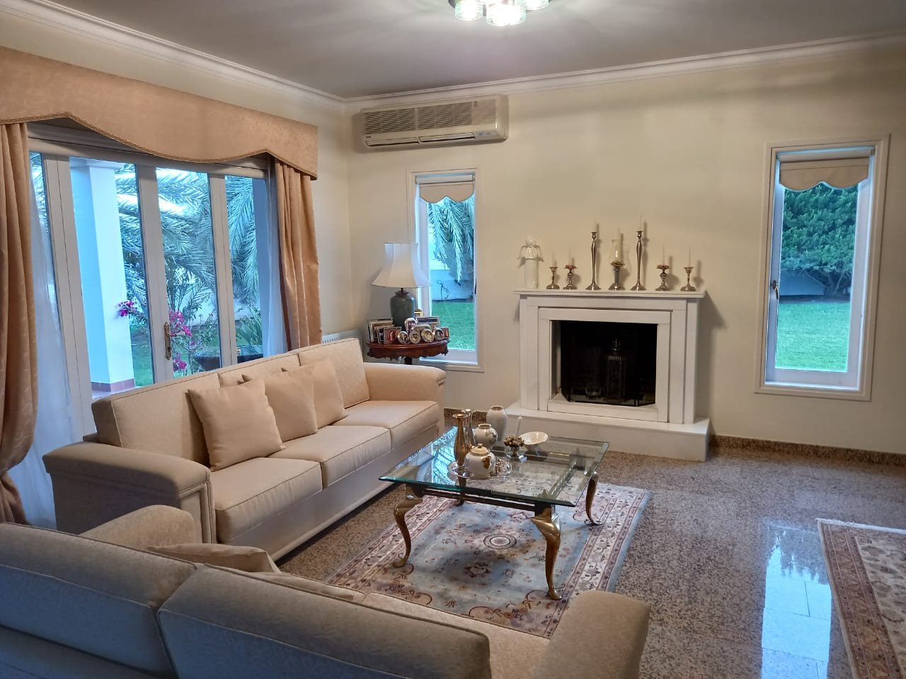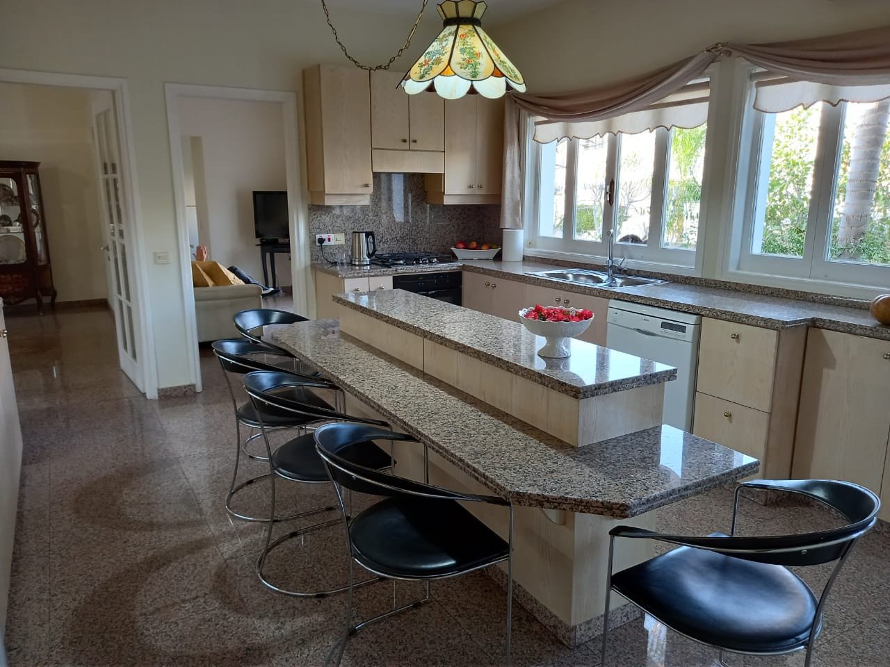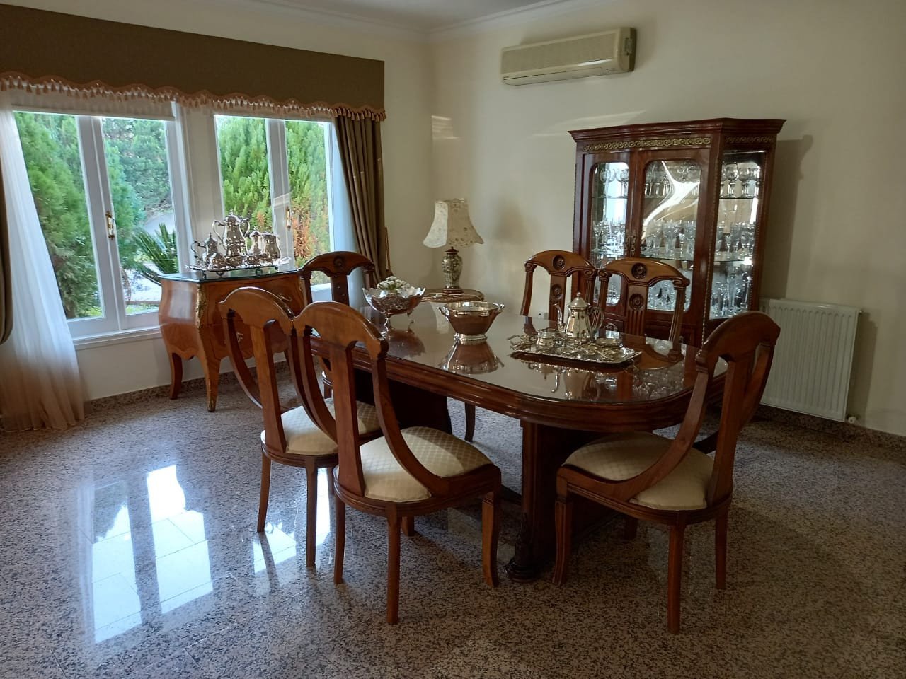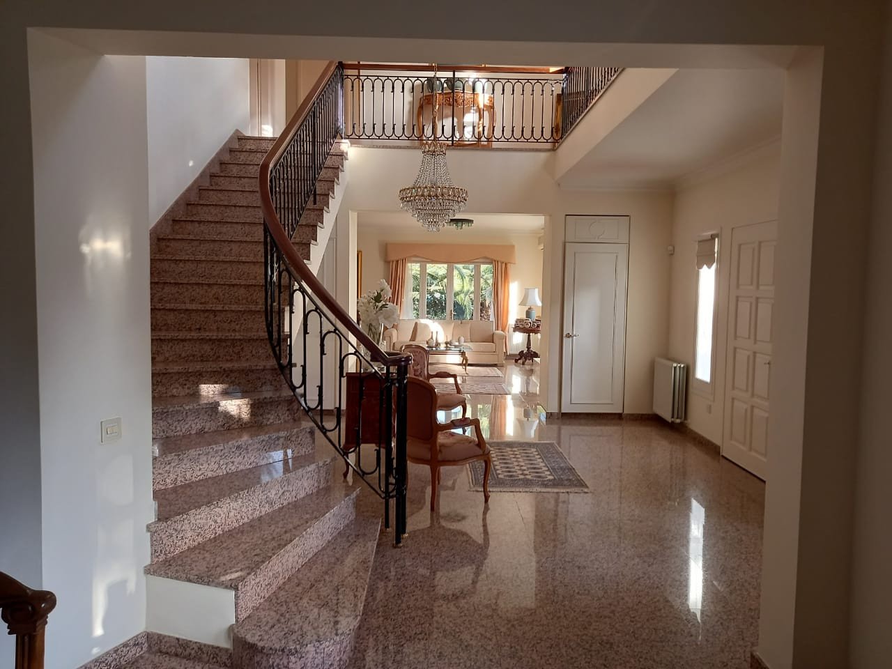 This luxury house is built in a plot of 1660 m2 over two floors. The ground floor comprises of an impressive entrance hall with double height, spacious living room with a fireplace overlooking the garden , dining area, separate kitchen with sitting area, laundry and guest toilet. There is an annexe of 50 sq.m. that serves as a separate apartment. The first floor comprises of 2 double bedrooms, a master bedroom with an en-suite shower, a family bathroom, and a kitchenet.