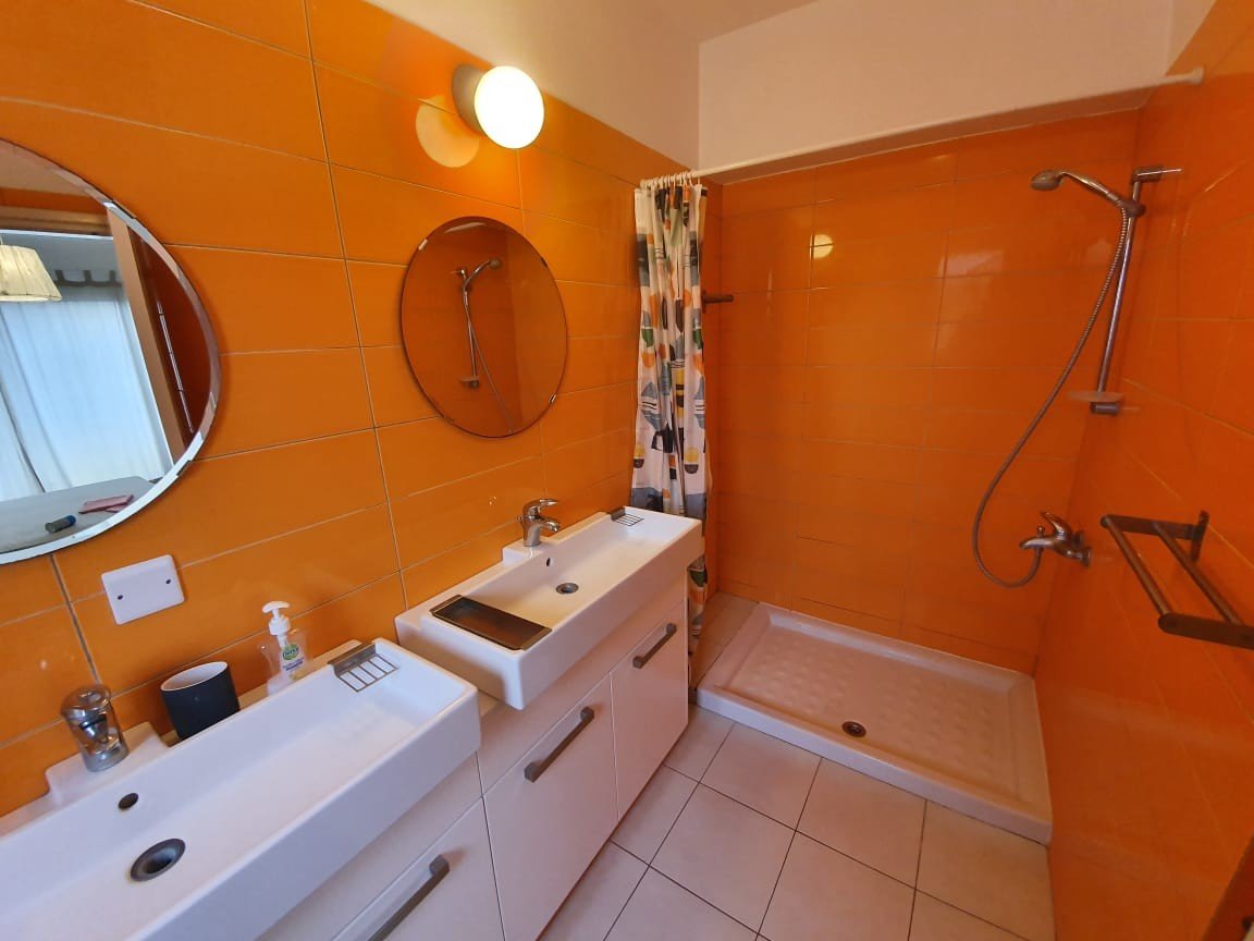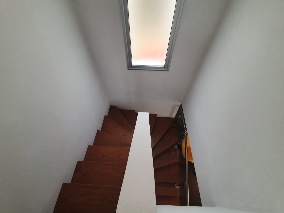 On the ground floor, there is an open plan kitchen, a beautiful living and dining area, and a guest toilet. On the floor above, there are the 3 bedrooms with the master bedroom ensuite.