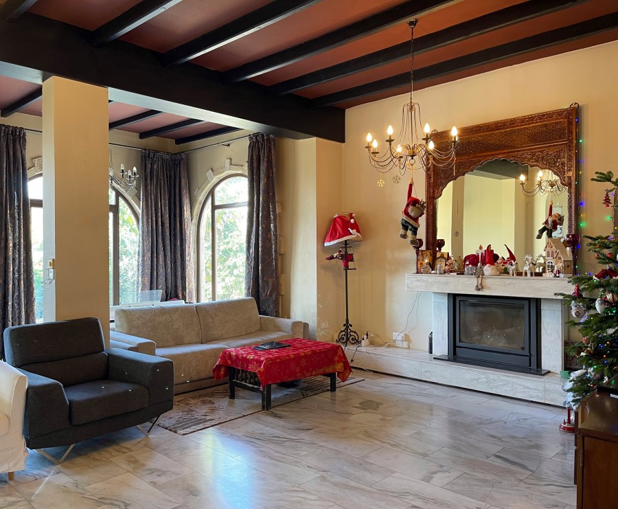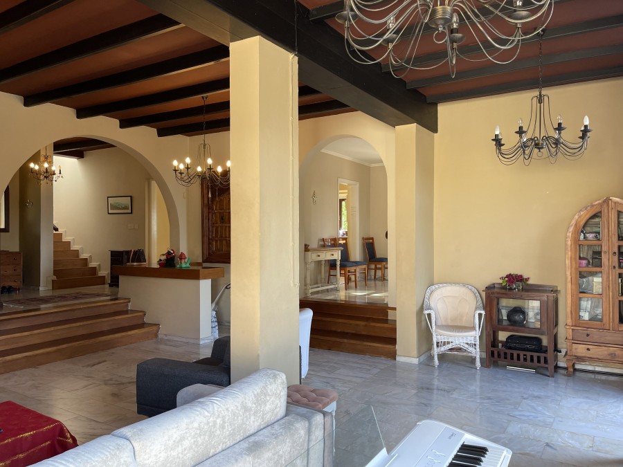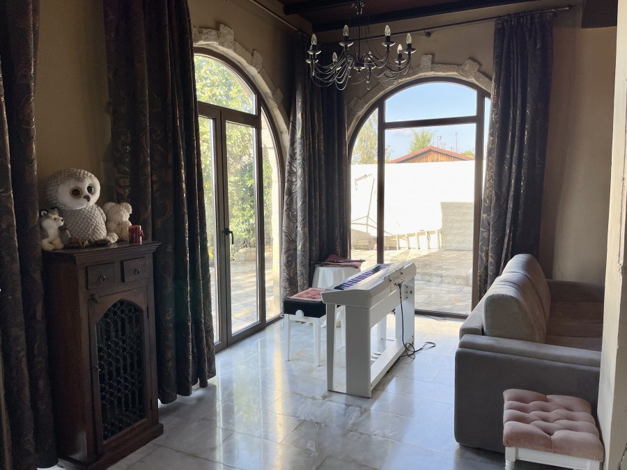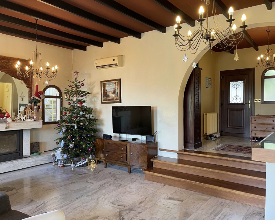 This is a very spacious well maintained 3-bedroom house strategically positioned to enjoy the privacy and the magnificent sea & mountain views in Tala. A corner plot in a quiet location at an altitude of 260 meters above sea level within a 2 km from the monastery of St. Neophytou. The house built in a classical style and it offers a specious outdoor area with a big garden, sauna, swimming pool and a barbeque area. Inside the house on the 1st floor you will find a cosy fireplace, separate kitchen and a very spacious living room. At the 2nd floor are located 3 bedrooms as well as 1 additional room that can be used as office. The master bedroom is quipped with a walk-in wardrobe and an ensuite bathroom. All the rooms are equipped with all necessary appliances for a comfortable living. The furniture finished in a traditional style to follow the idea of a classical house that makes you feel maximal relaxed and cosy. Moving outside the main house you can see the additional staff house, which is currently equipped as a gym and laundry room. The parking area accommodates up to 3 vehicles. This property needs to be viewed to be fully appreciated.