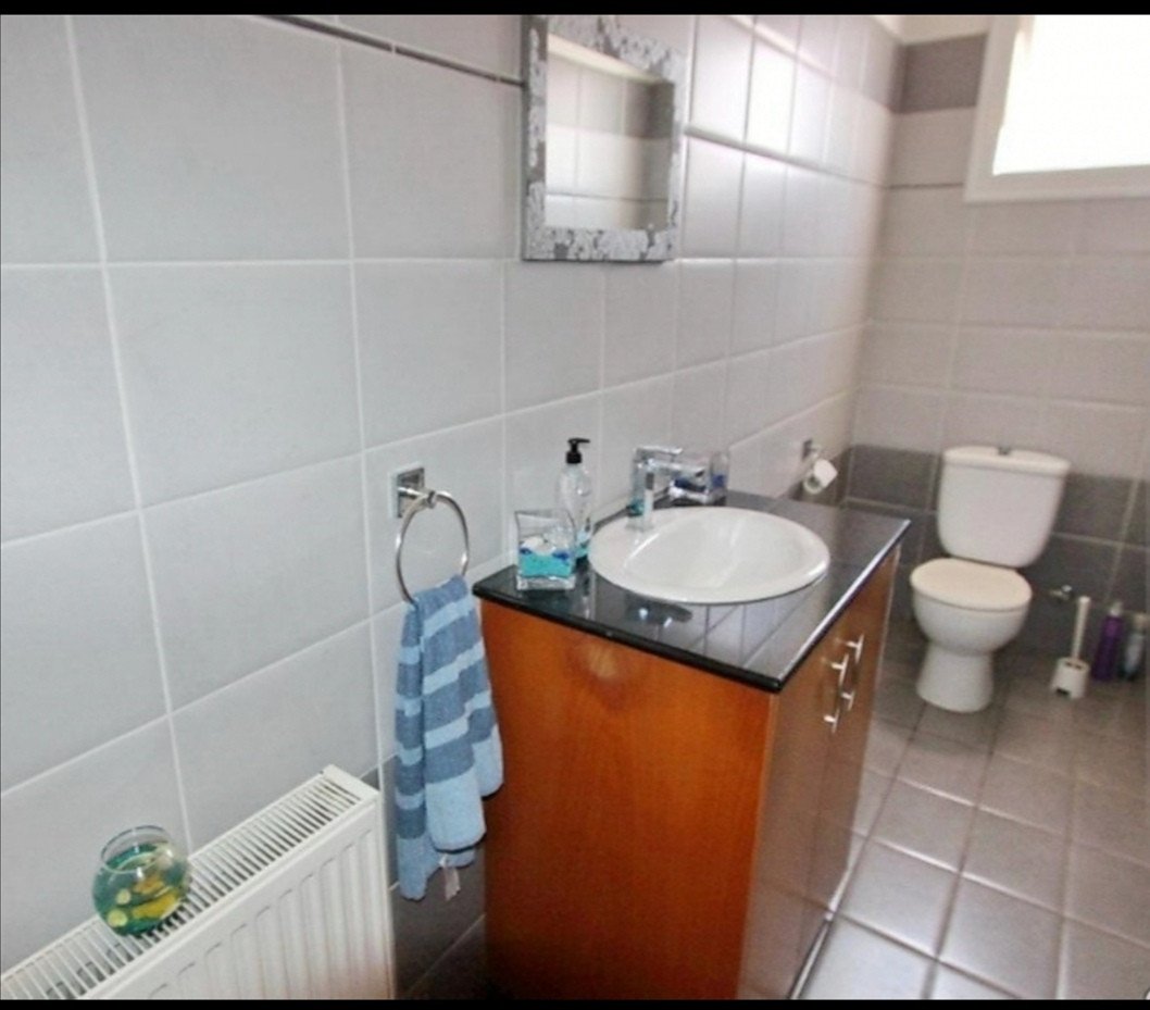 Each of the 3 bedrooms have fitted wardrobes, ceiling fans and window shutters. The master bedroom boasts a walk in wardrobe, perfect for extra storage. The bathroom has been finished with elegant ceramics and there is a separate guest wc for convenience.