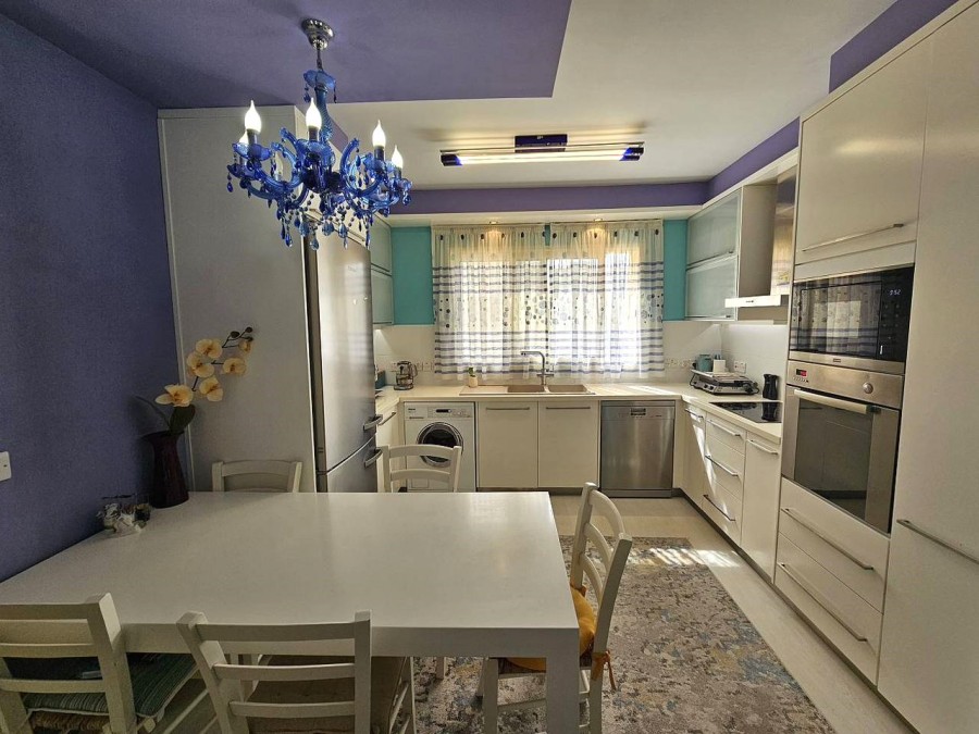 The penthouse offers a top location and is equipped with modern amenities, including a 4 kW solar panel system. The roof garden is a highlight, featuring a Jacuzzi bath and three covered pergolas, creating a perfect oasis for family relaxation and entertainment. Additionally, the building includes a new communal pool for residents to enjoy. Inside, the penthouse is fully furnished with premium kitchen appliances, ensuring both style and convenience.