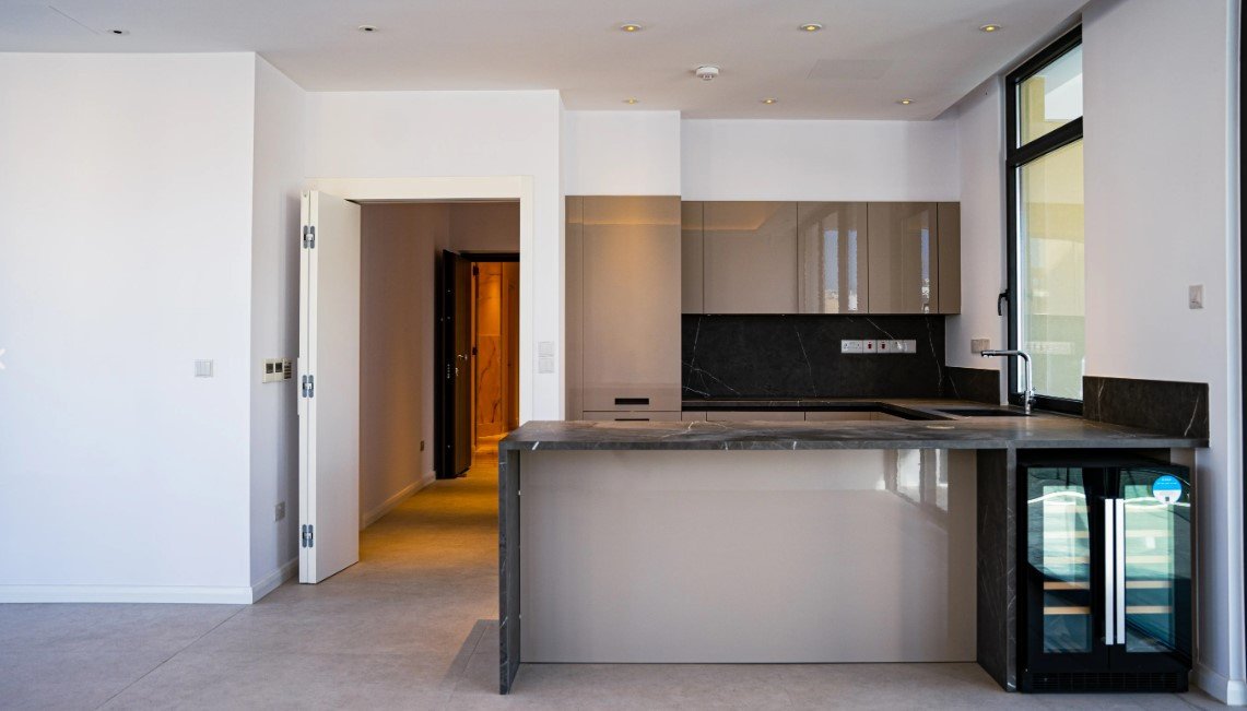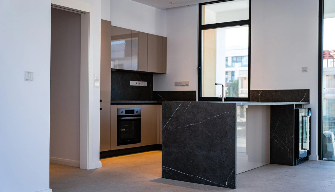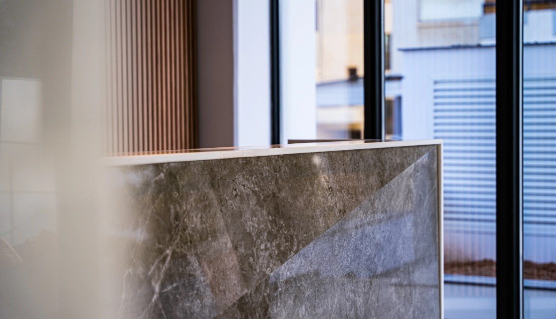 High quality Italian kitchens fitted with designed ceramic bench tops incorporating sinks and backsplashes