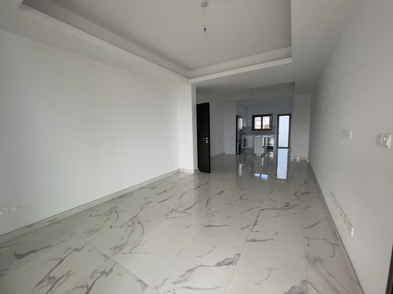 The south facing living room with direct access to 40 m² large ratio offers an open plan kitchen with direct access a small balcony, and a toilet.