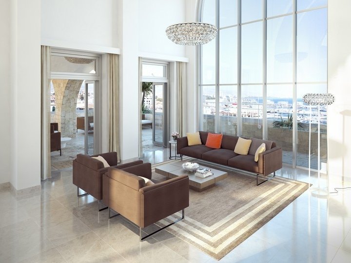 There are the only apartments on the sea in the Mediterranean. They will be surrounded by water and will only be accessible via a private bridge. The 61 luxurious apartments, located just a few meters from the beach, will be overlooking the Marina and the city of Limassol.