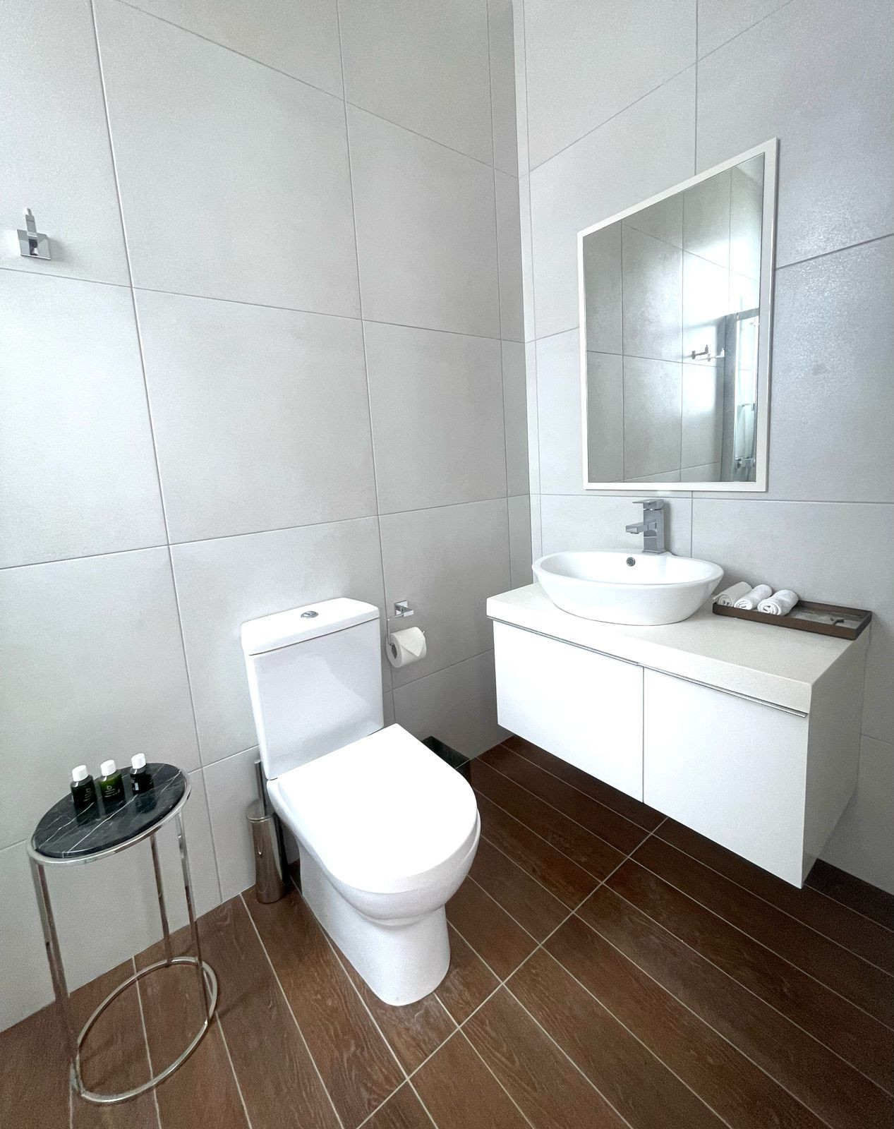 3 toilets (two showers and one bathtub)