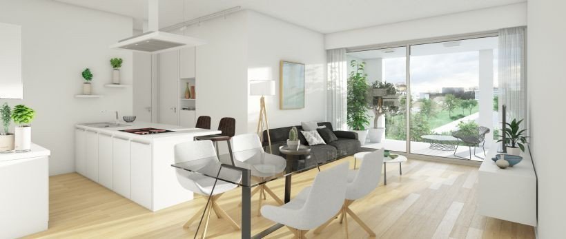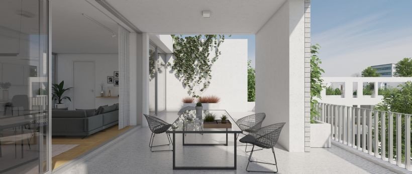 The project stands out not just for its elegance but for its construction superiority too. Special attention has been given to designing a functional apartment floor plan without wasted space, commodious in size and comfortable to live in. The open-plan kitchen/dining/sitting area faces curtain windows that open into big covered verandas.