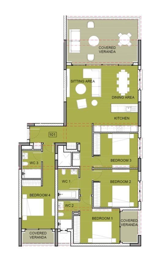 Penthouses enjoy private roof terraces with pools