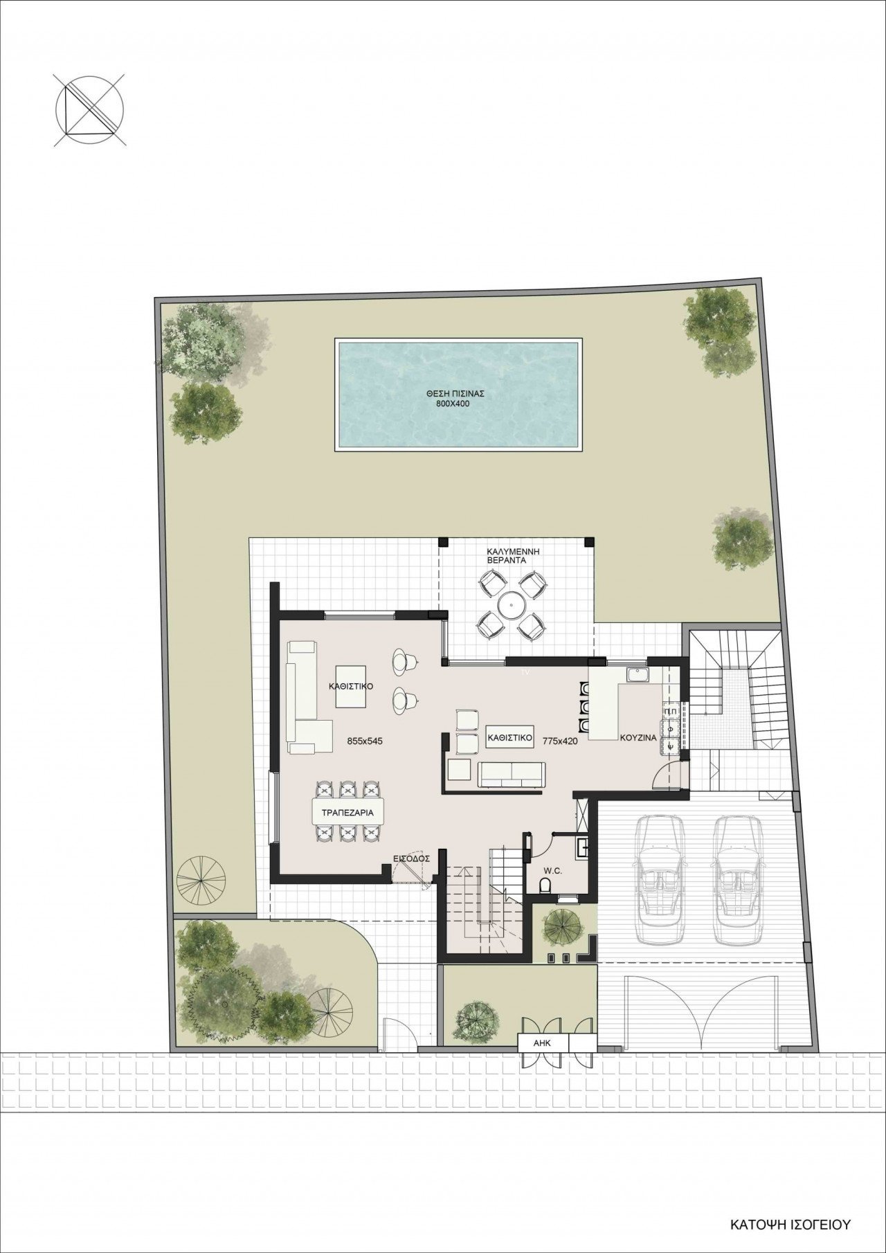 The ground floor comprises of a spacious living room, dining room and a separate modern kitchen, all with a view to the big veranda and garden. It also accommodates a guests WC. On the first floor there are four large bedrooms: the master bedroom with en-suite bathroom and two more bedrooms that share a common bathroom