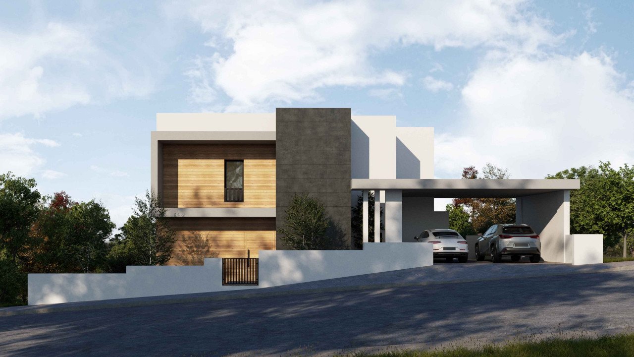 A modern luxury villa with a beautiful garden, double covered garage and a large covered terrace.