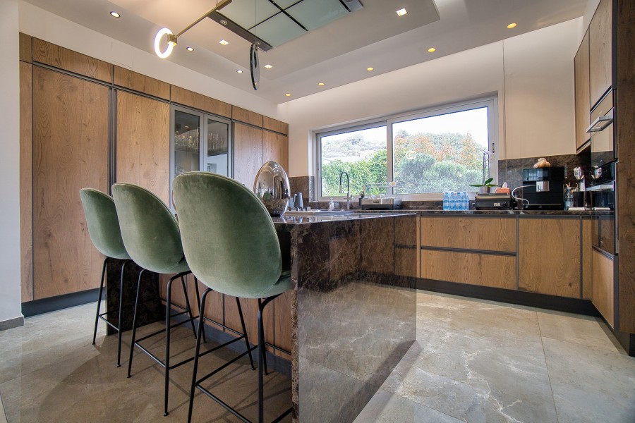 Equipped with central heating, photovoltaics, and a VRV air conditioning system, comfort is ensured throughout the year. The highlight of this villa is its Turkish Hammam sauna, providing a serene retreat for relaxation and rejuvenation. Additionally, a custom-designed cinema room with a premium sound system and acoustic sound treatment promises an unparalleled entertainment experience.
