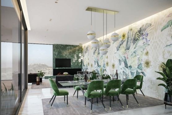 The residences offer a modern interpretation of Mediterranean living and architecture. Spanning four levels, each villa includes a large marble tiled floating infinity pool, built-in pool loungers, expansive outdoor living areas, lush gardens, wood and marble outdoor panelling, water features and double-parking space. The floor to ceiling double glazing allows for maximum enjoyment of the milliondollar sea view. The rooftop garden is the ideal space for large gatherings and events. Exterior landscaping options are also available along with regular garden and pool maintenance.