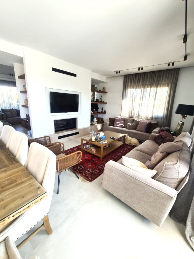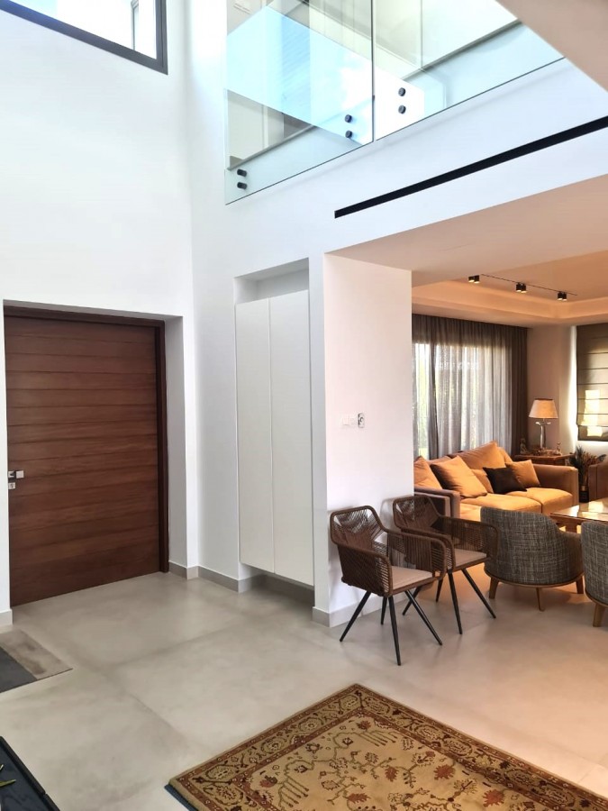 Modern custom build villa in quiet area of Agios Athanasios for sale. Villa comprises of 4 good size bedrooms ( 2 en-suite) on one level and 1 bedroom ( maids quarter) on the ground floor. The main hall entrance leads to a spacious areas of 2 lounge/ TV area, living, dining & kitchen leading to the well organized outdoor space with a swimming pool and water irrigated plant -garden area. Moreover villa has been finished with a high specifications and latest upgrades : underfloor heating ( electric), VRV system, photovoltaic of 10 KW, electric shutters, mosquito nets, cameras, salt water in swimming pool and veil for garden. This ample and modern villa will suite for a perfect city living.