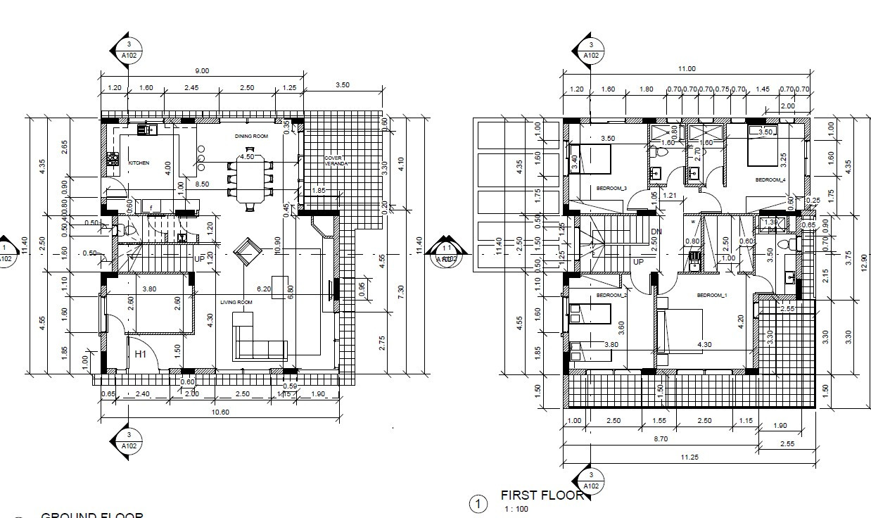 Stylish and spacious residence on a half-share of 506 sq.m. plot with 220 sq.m. covered area and a 25 sq.m. covered balcony. The home features an open-plan living and dining area, modern kitchen, office, and guest toilet on the ground floor.