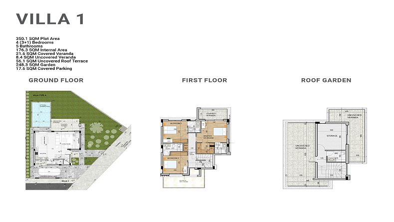All Villas have 4 bedrooms a private garden and roof terrace with the option of a private pool.