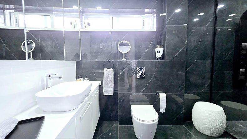 This Luxury with Sea view residence features four bedrooms, including an en-suite bathroom, as well as an additional bedroom.