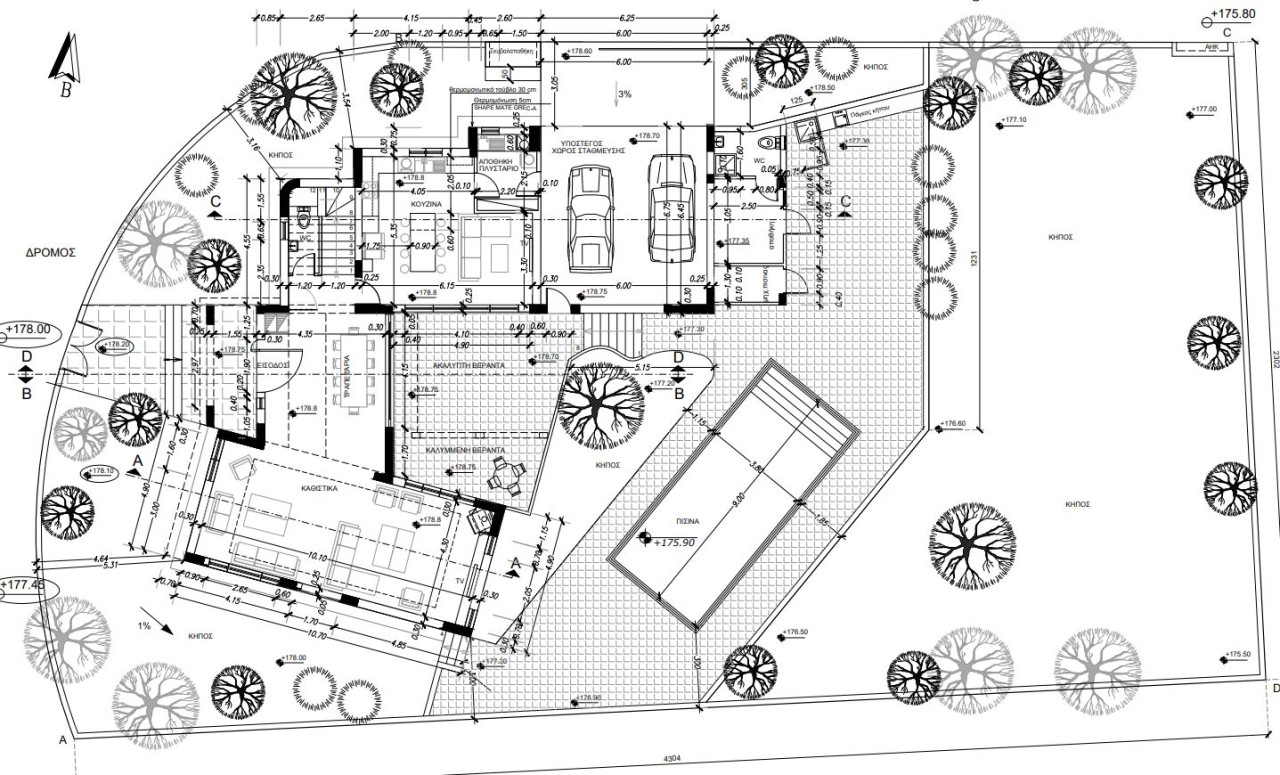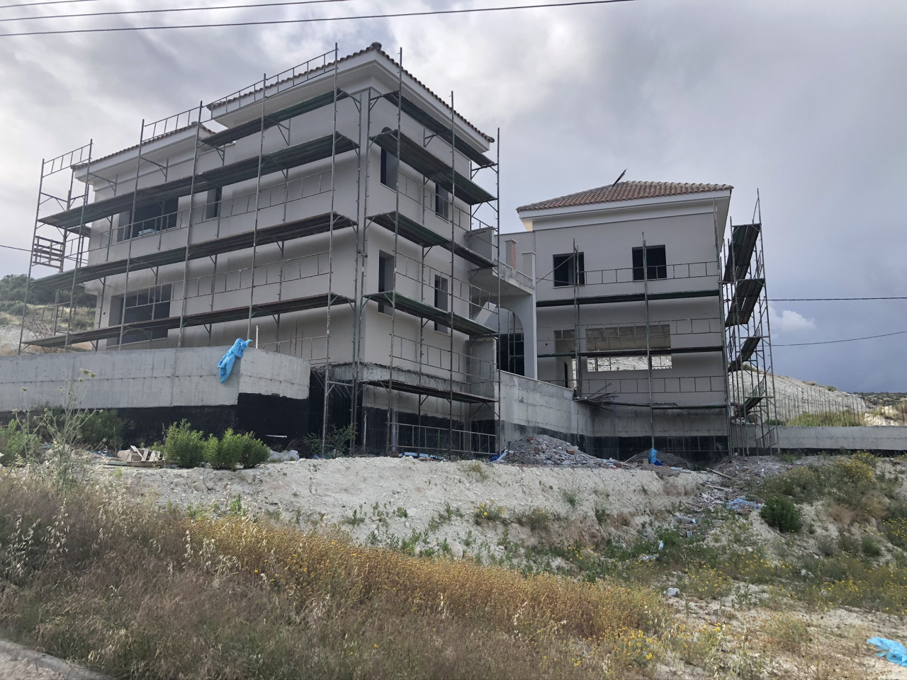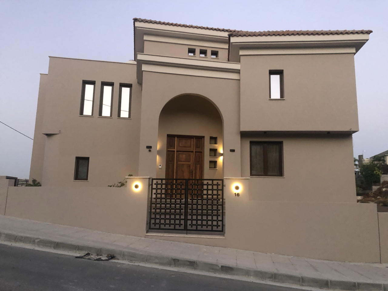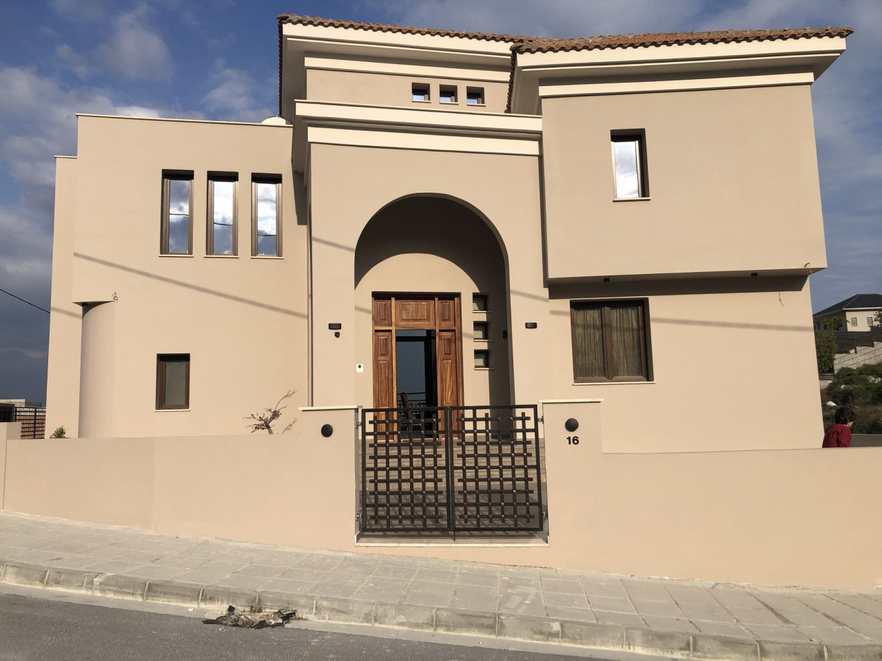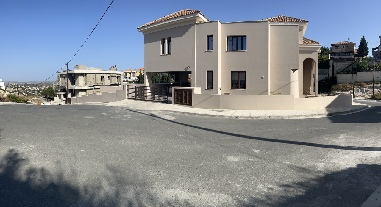 This stunning P-shaped house, situated on a 1002m² plot in Agios Tychonas, boasts a contemporary design and was completed in December 2020, with only the pool yet to be built. Positioned on a corner plot, the property is bordered by public green space on one side.