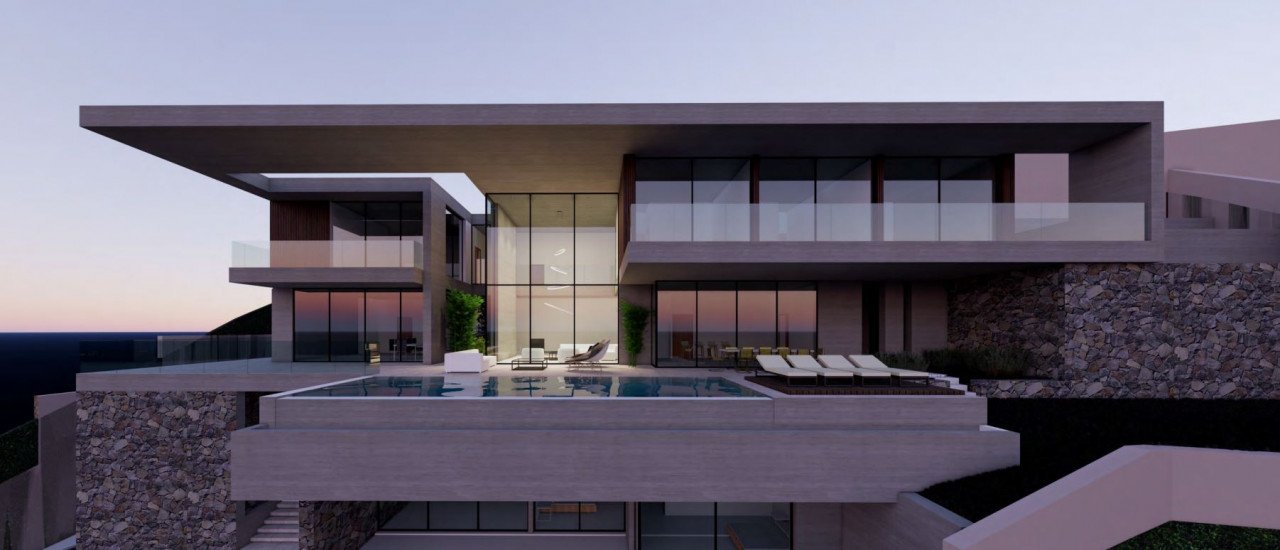 The project consists of 7 superb villas, placed within their extensive landscaped gardens and impressive overflow swimming pools what blend with horizon. The mansions are set upon a mountain side commanding the breathtaking 180º vistas of the Mediterranean Sea.