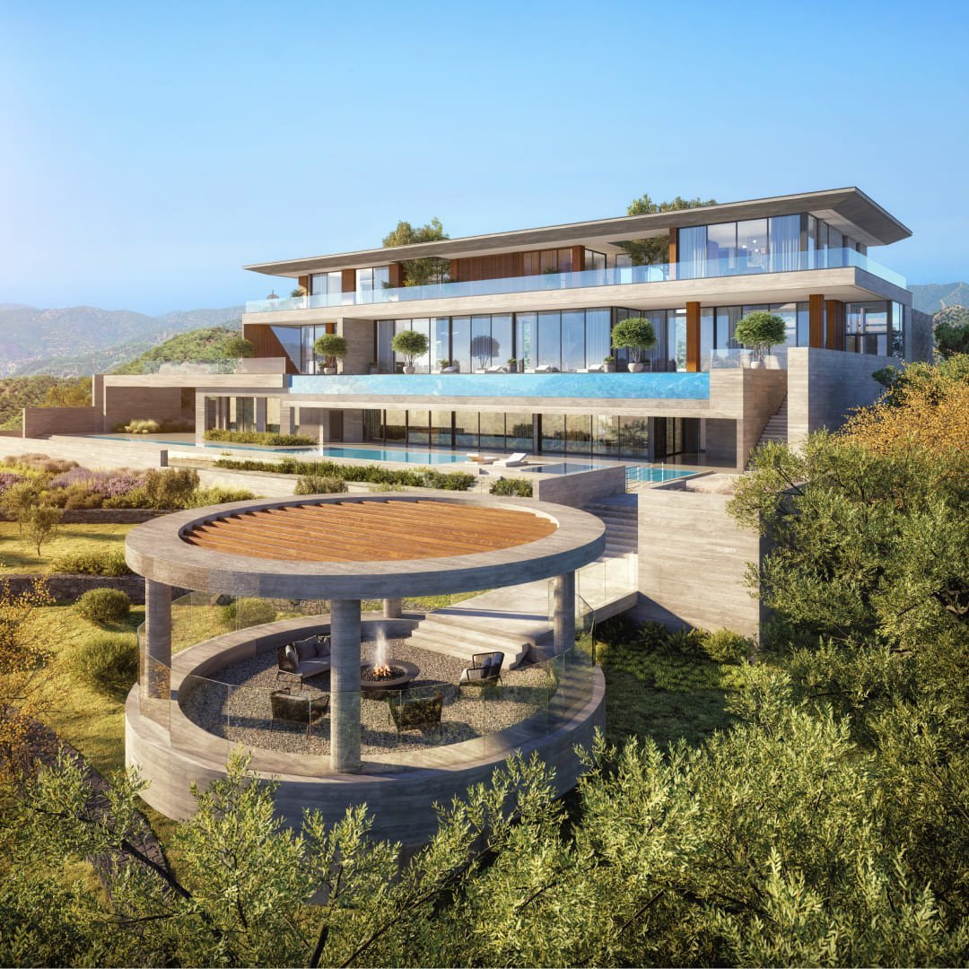 The project consists of 7 superb villas, placed within their extensive landscaped gardens and impressive overflow swimming pools what blend with horizon. The mansions are set upon a mountain side commanding the breathtaking 180º vistas of the Mediterranean Sea.
