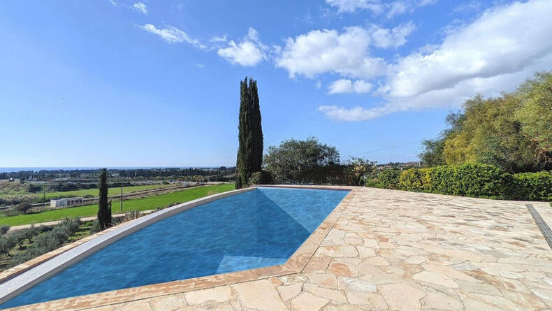 This property embodies luxury living in Cyprus, combining comforts with breathtaking natural scenery. A luxury two storey house enjoying an unobstructed sea view, with basement and a swimming pool, located in Anarita, Paphos. The ground floor consists of an open plan living room with a dining area and a second living room with a fireplace, a kitchen, guests' toilet, a laundry room, and three bedrooms of which two are en-suite. The first floor consists of one large bedroom with en-suite bathroom and a walk-in wardrobe. The basement consists of a storage area and boiler room. Externally, there is an uncovered garage, a private swimming pool and a large garden/orchard.