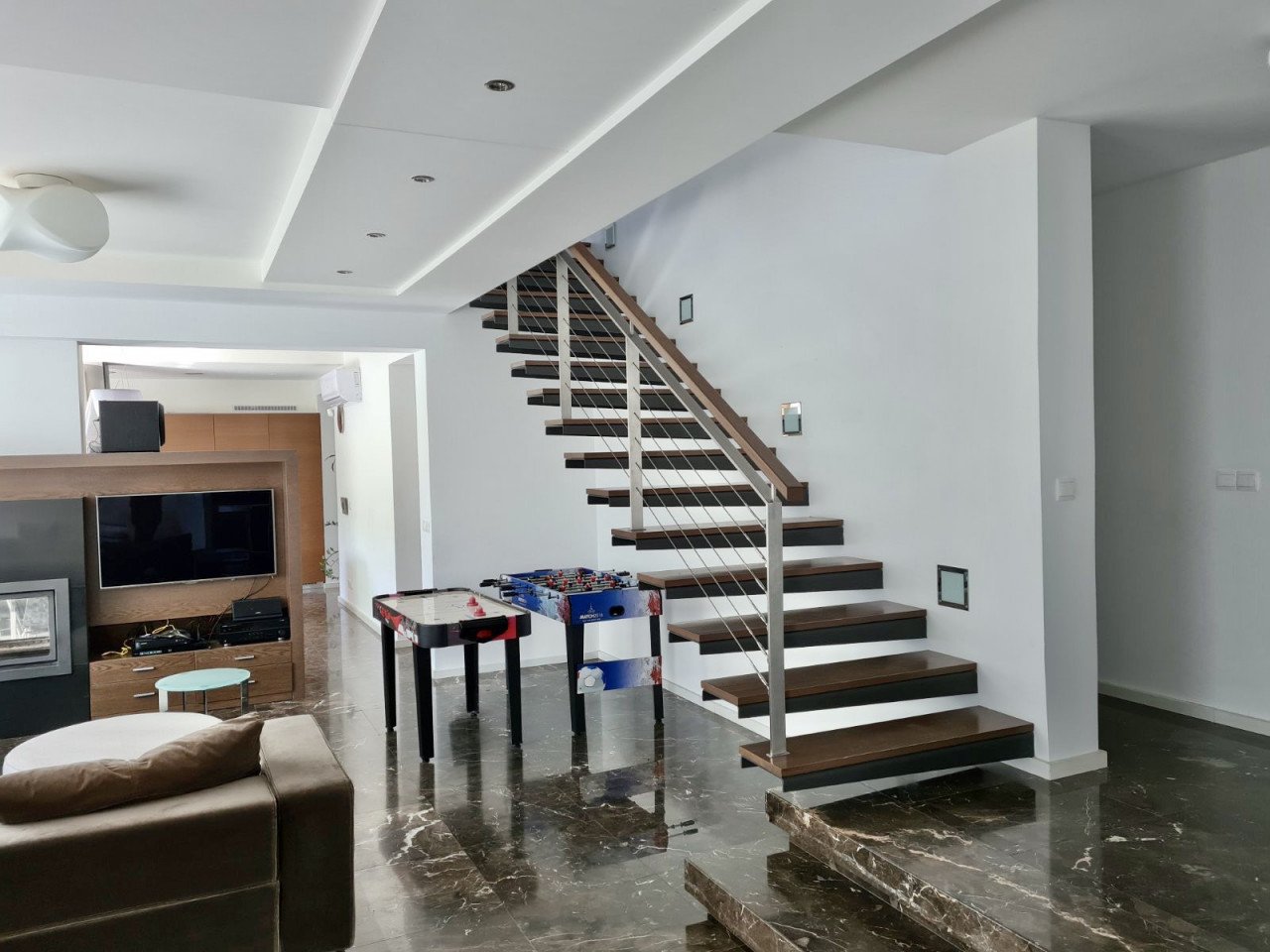 The house is situated in a quiet area in Nicosia, in Anthoupoli, only 20 minutes drive from the center of Nicosia, 35 minutes of, with all amenities are close of it, and etc. The house was built in 2019, on a 562sq.m plot area which consists of 249sq.m covered area and has 2 floors, with modern architecture, and so the maintenance is in very good condition.