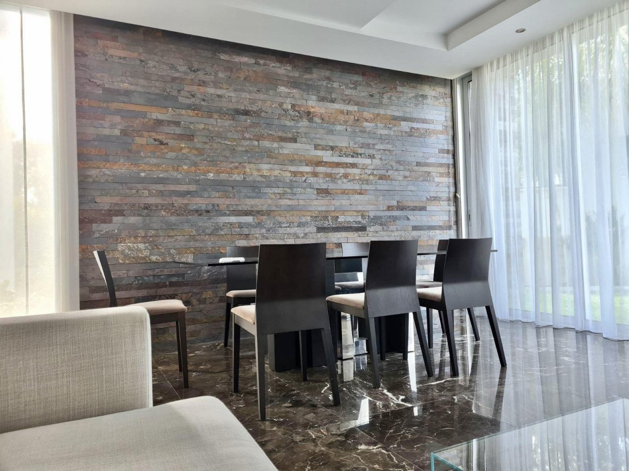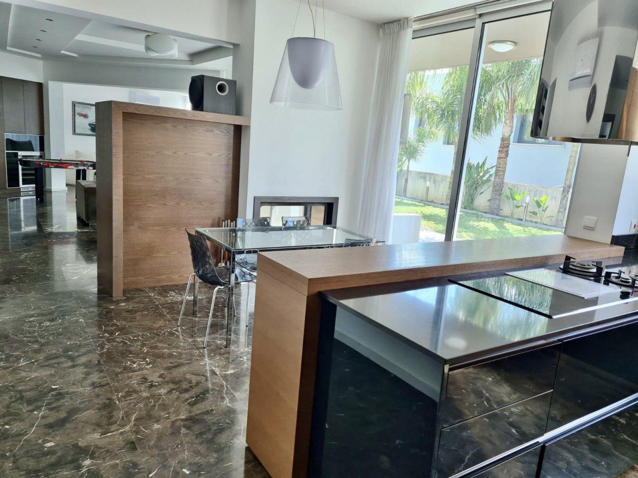 Among other elements, the house features air-condition split unit and electrical underfloor heating in all rooms, solar and pressurized water, a double-faced fireplace, utility room, storage room, a large garden with a swimming pool, a security system, and a covered parking space.