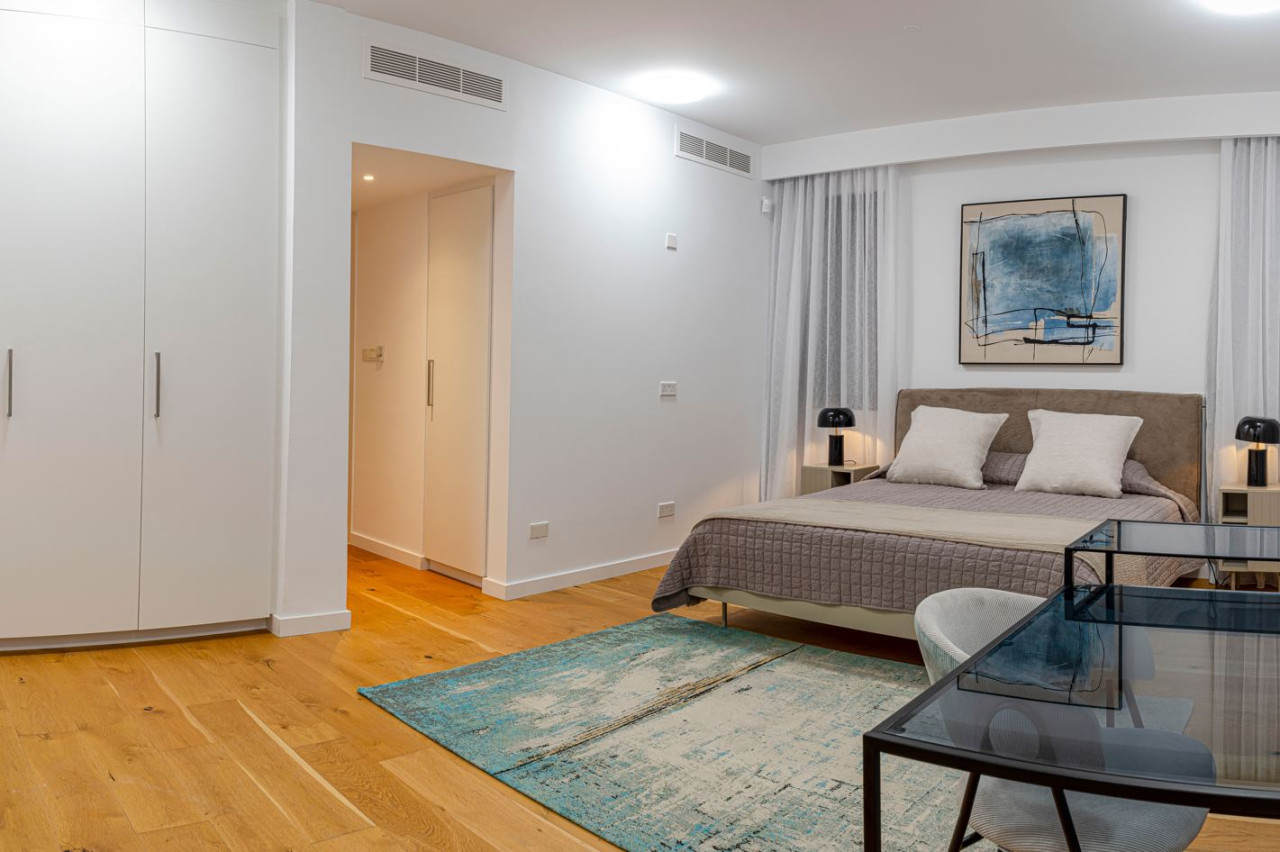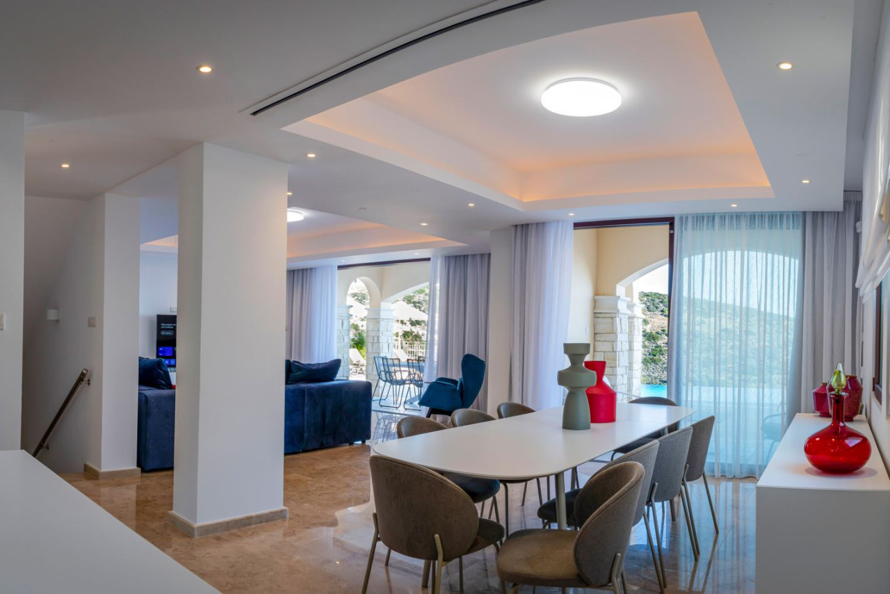 The spacious and airy first floor lobby leads to the magnificent master bedroom with panoramic glass doors opening on to a large terrace with unparalleled views of the Mediterranean and magnificent sunrise and sunset views over the horizon.