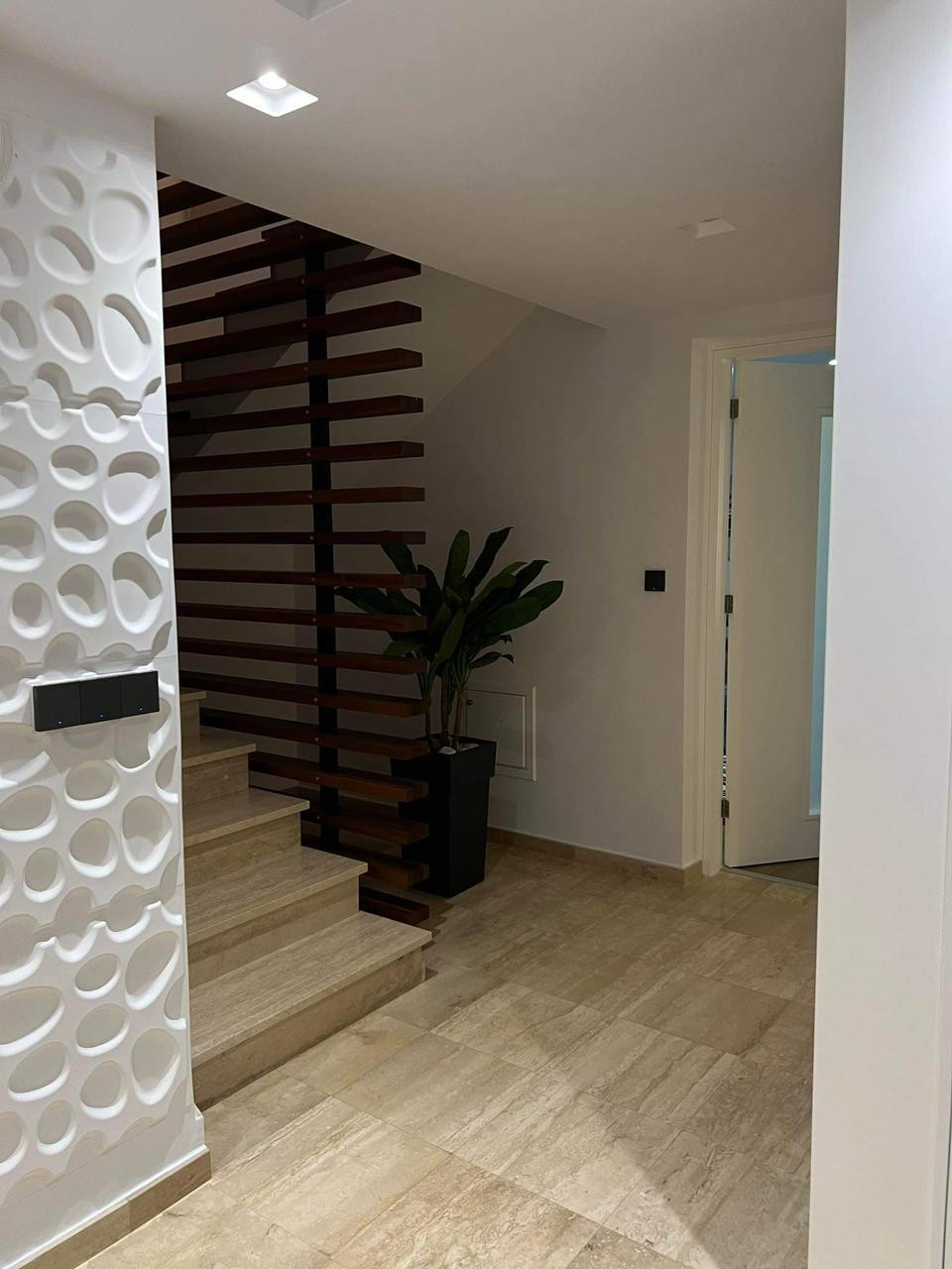 Two gated driveways on either side of the villa lead to the main entrance allowing for ample car parking. Upon entering the villa, one will notice the harmonious colors with the villa enjoying tremendous light through its many doors and windows. The villa offers amazing architecture, and this is visible throughout with its luxury fixtures and fittings.