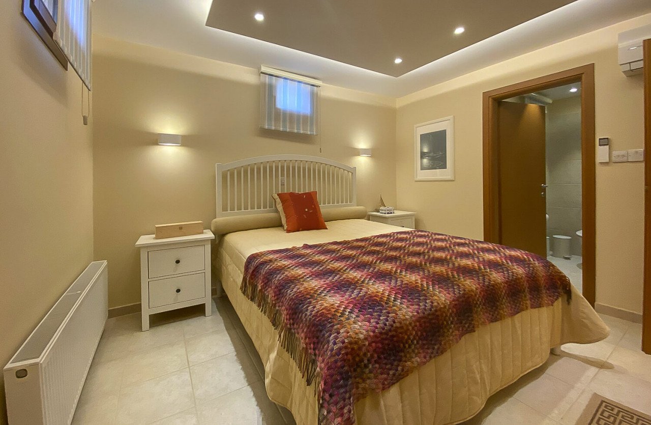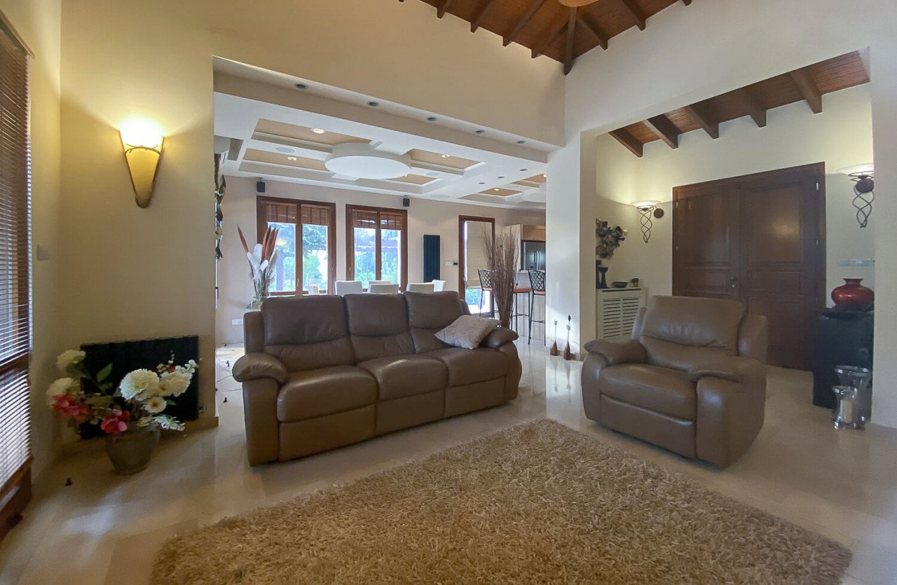 Upon exiting the villa, one will notice the gardens reflecting traditional Cypriot landscaping and private outdoor living. There is a fantastic BBQ area accompanied with a large overflow swimming pool.