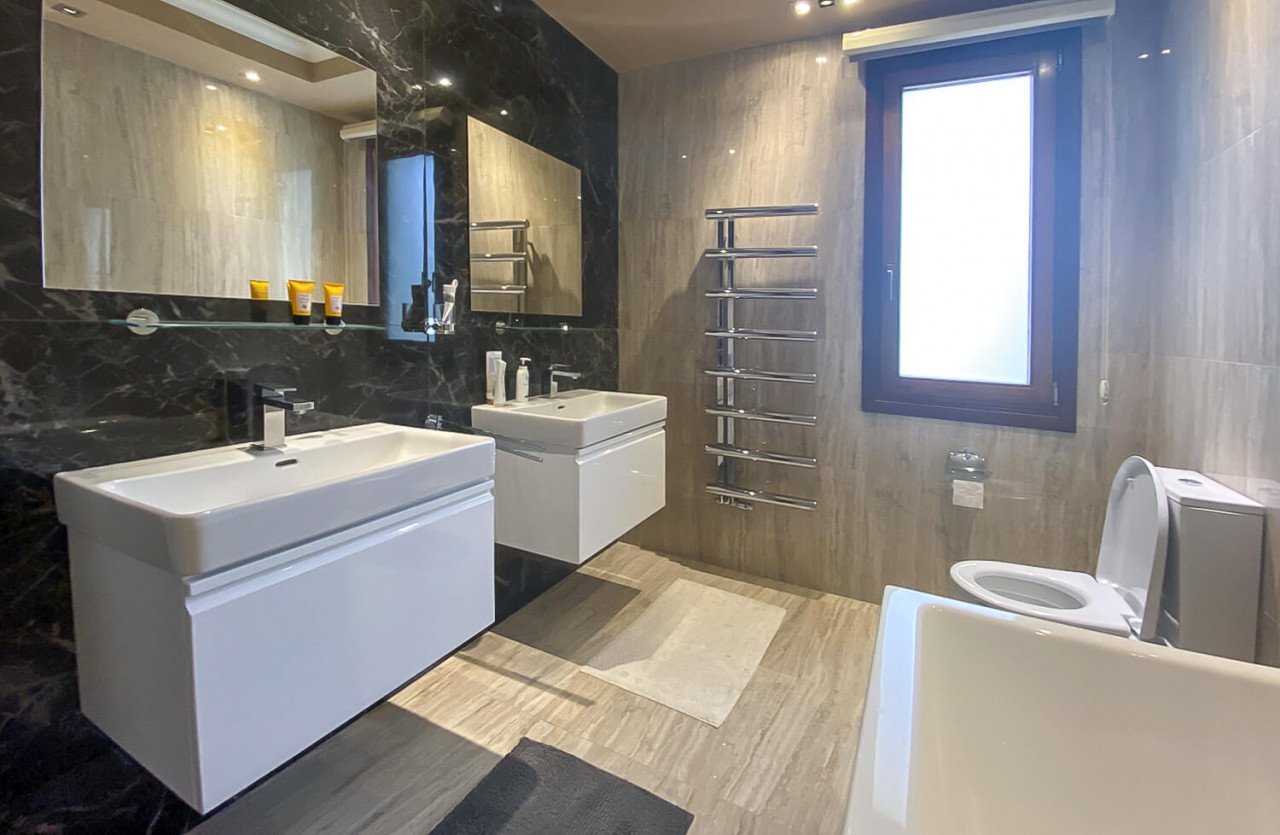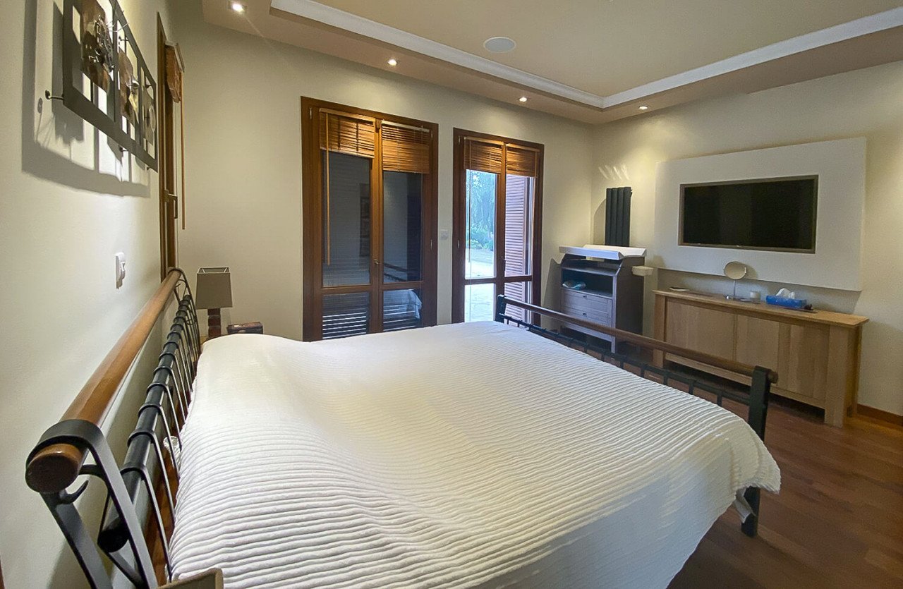 The villa enjoys a spacious master bedroom en suite located on the ground floor area, with a second & third bedroom both en suite located on the upper and lower levels of the villa. A fantastic grand cinema room can be enjoyed on the lower level of the property offering a true cinematic experience. An additional separate studio apartment can also be found when to the left of the villa when exiting the living & dining area.